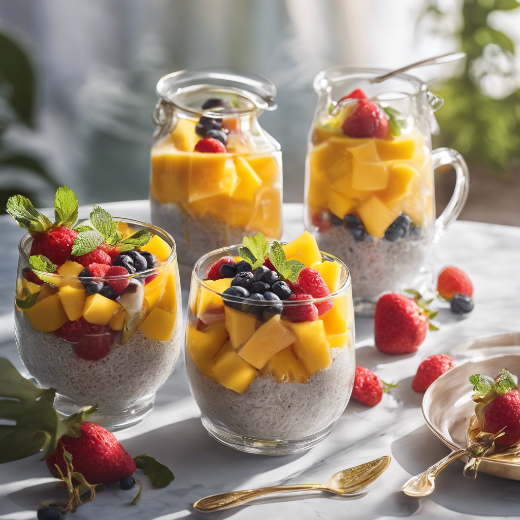 The Coconut Mango Chia Pudding with added fresh berries is a delightful and healthy dessert that has gained popularity in recent years. This tropical-inspired treat combines the creamy richness of coconut milk with the sweet and tangy flavors of ripe mangoes and juicy fresh berries. The dish originated in the tropical regions of Southeast Asia and the Pacific Islands, where coconuts and mangoes are abundant. Renowned chefs and health-conscious restaurants have embraced this dish, adding their own unique twists by incorporating a variety of fresh berries such as strawberries, blueberries, and raspberries. The key to a perfect Coconut Mango Chia Pudding lies in the quality of the ingredients, especially the ripeness of the mangoes and the freshness of the berries. The chia seeds, when soaked in coconut milk, create a pudding-like texture that is both satisfying and nutritious. One famous alternative method for making this dish involves blending the coconut milk and mangoes together before adding the chia seeds, creating a smooth and creamy pudding with bursts of fruity flavor. Today, the best versions of this dish can be found in tropical-themed cafes and health-conscious eateries that prioritize using fresh, organic ingredients. Whether enjoyed as a light breakfast, a refreshing snack, or a guilt-free dessert, the Coconut Mango Chia Pudding with added fresh berries is a delightful fusion of tropical flavors and wholesome ingredients.