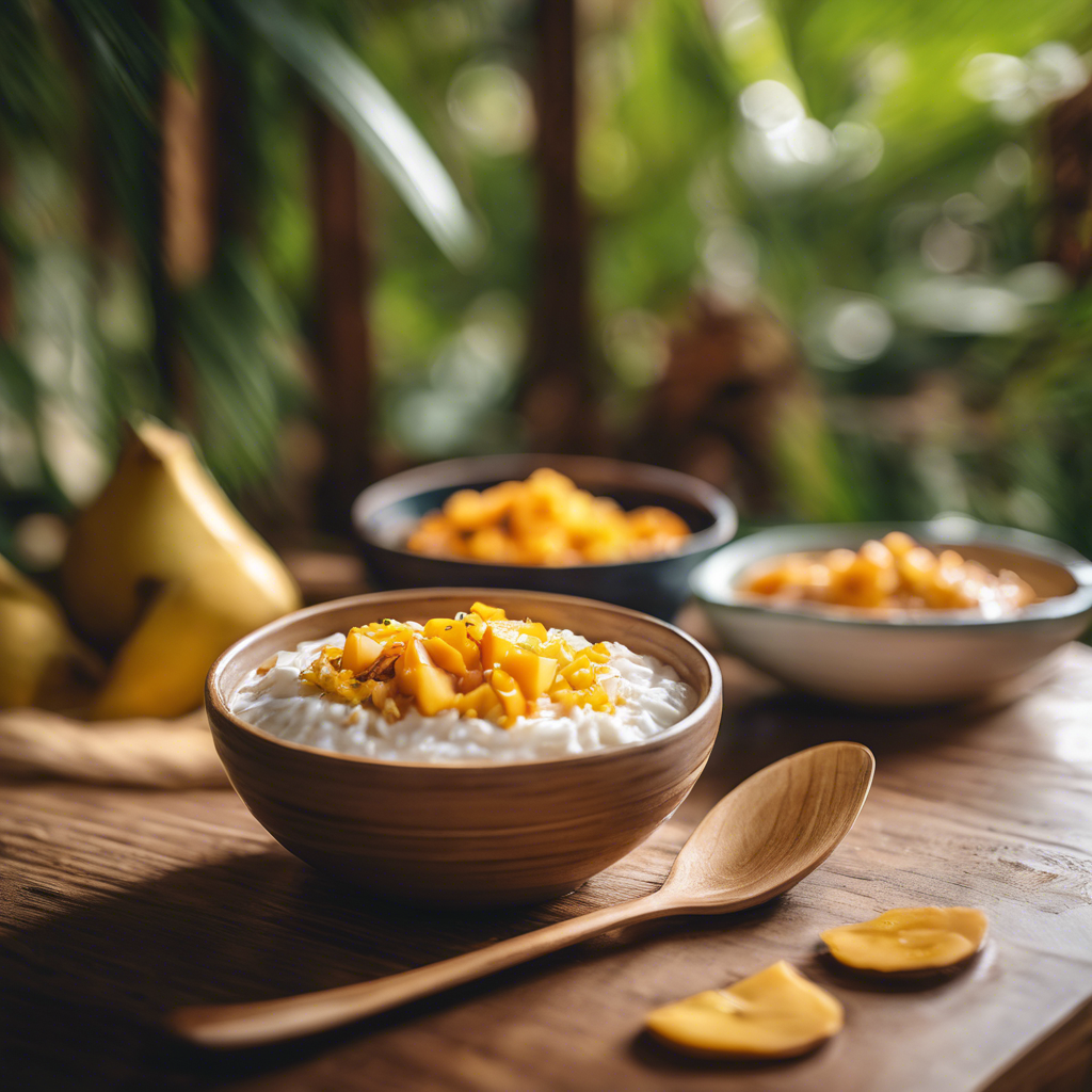 Coconut mango rice pudding is a delightful tropical dessert that originated in Southeast Asia, where rice, coconut, and mango are staple ingredients. This creamy and aromatic dish has gained popularity worldwide for its rich and exotic flavors. The combination of sweet mango, creamy coconut milk, and tender rice creates a luscious and indulgent treat. Renowned chefs in Thailand and Indonesia have perfected this dessert, infusing it with their unique culinary expertise and local ingredients. The best versions of this dish can be found in authentic Thai and Indonesian restaurants, where the chefs skillfully balance the sweetness of ripe mangoes with the creamy texture of coconut milk. The key to a perfect coconut mango rice pudding lies in using high-quality coconut milk and ripe, juicy mangoes. The rice should be cooked to a tender consistency, allowing it to absorb the flavors of the coconut and mango. Some variations of this dish include adding a hint of pandan leaf for a fragrant twist or topping it with toasted coconut flakes for added texture. For those looking to recreate this delectable dessert at home, it's essential to source the freshest ingredients, especially ripe mangoes and quality coconut milk. The dish can be served warm or chilled, making it a versatile treat for any occasion. Whether enjoyed as a comforting finale to a spicy Thai meal or as a refreshing summer dessert, coconut mango rice pudding is a true celebration of tropical flavors.