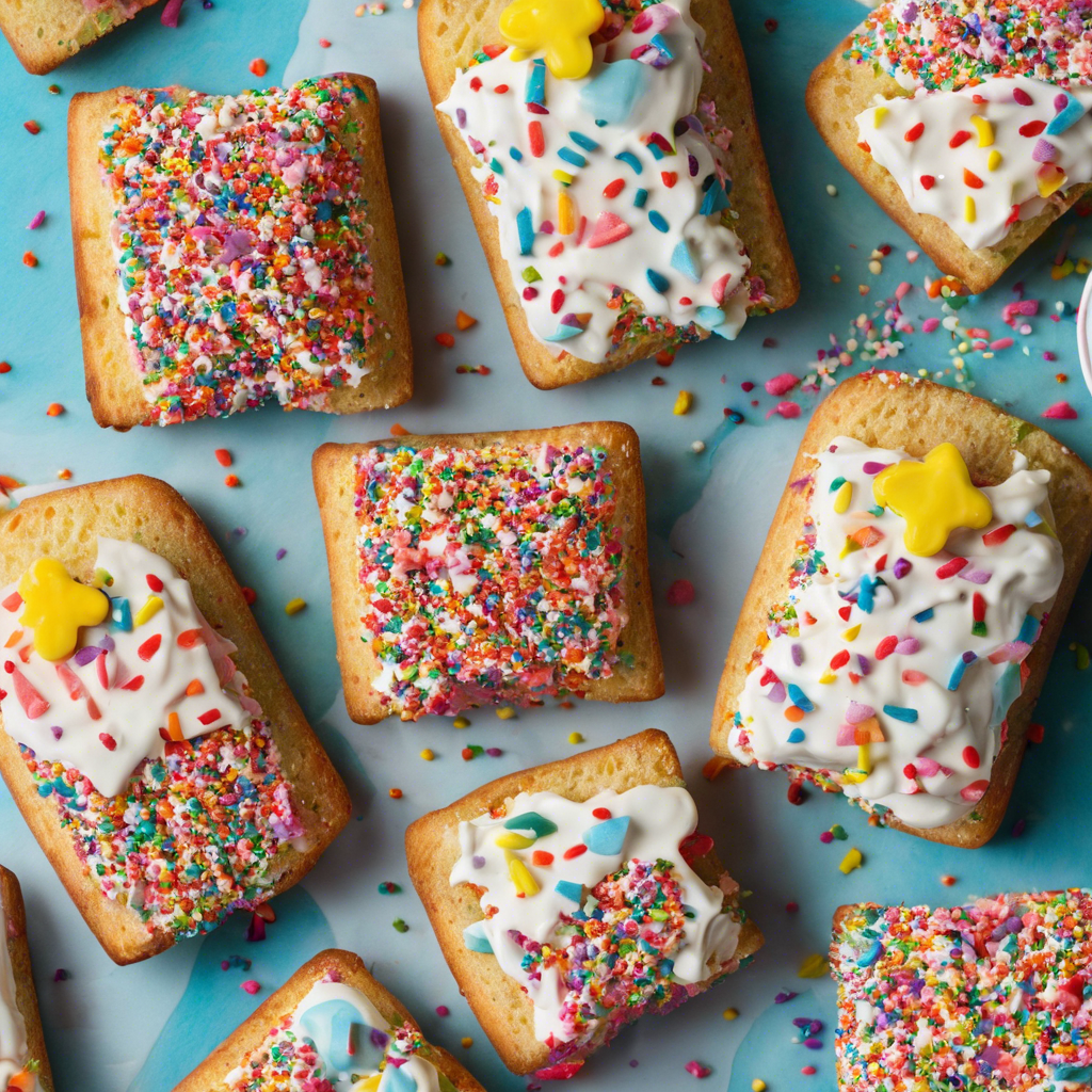 - Sprinkle 1 tablespoon of rainbow sprinkles over the cream cheese spread on each slice of bread.