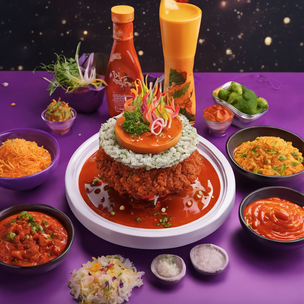 The Cosmic Cuisine Combo with extra spicy sauce is a tantalizing fusion dish that originated in the bustling kitchens of Southeast Asia. This fiery creation combines the bold flavors of Thai, Indian, and Malaysian cuisines, resulting in a mouthwatering explosion of taste. The dish features a medley of succulent meats, vibrant vegetables, and aromatic spices, all drenched in a zesty, extra spicy sauce that sets taste buds ablaze. Renowned chefs in Bangkok, Delhi, and Kuala Lumpur have perfected this dish, infusing it with their culinary expertise and regional influences. The key to achieving the perfect Cosmic Cuisine Combo lies in the balance of heat and flavor, as well as the use of fresh, high-quality ingredients. Today, the best versions of this dish can be savored in authentic Southeast Asian eateries, where skilled chefs meticulously prepare each component to achieve a harmonious blend of spiciness and savory goodness. For those seeking an alternative method, experimenting with homemade spice blends and incorporating unique ingredients can elevate the dish to new heights of gastronomic delight. Whether enjoyed in a bustling street market or a cozy family-owned restaurant, the Cosmic Cuisine Combo with extra spicy sauce promises a thrilling culinary adventure for the daring palate.
