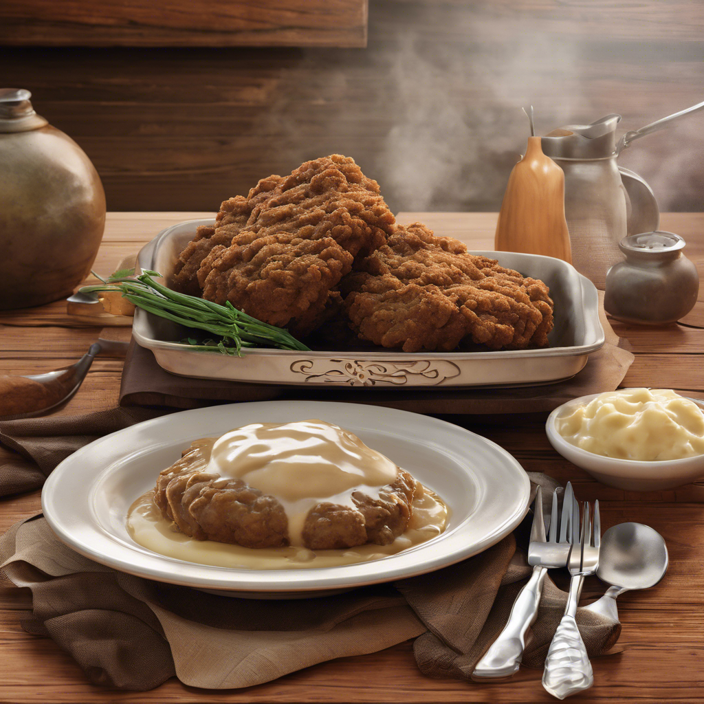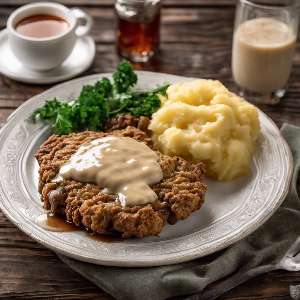 Country Fried Steak with Mashed Potatoes and Gravy is a classic Southern comfort food dish that has been enjoyed for generations. The dish originated in the rural South, where hearty and filling meals were a necessity for hardworking farmers and laborers. The steak is typically tenderized, breaded, and fried to a golden crisp, then smothered in rich, creamy gravy. The creamy mashed potatoes serve as the perfect accompaniment, soaking up the savory gravy and adding a comforting element to the dish. One of the most famous renditions of this dish can be found in the heart of Texas, where renowned chefs have perfected the art of country fried steak. The key to a delicious country fried steak lies in the breading - a perfect balance of crispy and flavorful. The gravy should be rich and velvety, with just the right amount of seasoning to complement the steak. As for the mashed potatoes, they should be creamy and buttery, providing a smooth contrast to the crispy steak. While the traditional method of preparing country fried steak involves pan-frying, some chefs have put their own spin on the dish by incorporating alternative cooking techniques such as deep-frying or air-frying. These variations offer a unique twist on the classic dish, appealing to a wider range of palates. Today, country fried steak with mashed potatoes and gravy remains a beloved staple in Southern cuisine, and can be found in diners, family-owned restaurants, and upscale eateries across the country. Whether enjoyed in a rustic roadside diner or a trendy urban bistro, this timeless dish continues to evoke feelings of warmth and nostalgia with every comforting bite.