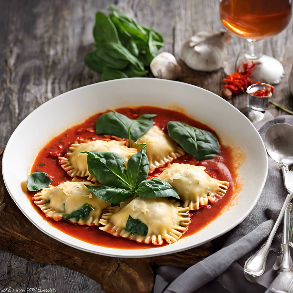 The history of Crab and Spinach Ravioli with spicy arrabbiata sauce can be traced back to the coastal regions of Italy, where fresh seafood and bold flavors reign supreme. This delectable dish combines the sweetness of crab meat with the earthy richness of spinach, all encased in delicate pasta pockets. The spicy arrabbiata sauce, with its fiery kick of red chili peppers and tangy tomatoes, adds a tantalizing depth to the dish. Renowned chefs in regions like Sicily and Naples have perfected this recipe, infusing it with their own unique flair. Today, the best versions of this dish can be found in authentic Italian trattorias and upscale seafood restaurants, where the quality of the crab and the freshness of the spinach are paramount. To make this dish at home, sourcing high-quality crab meat and fresh spinach is crucial. The arrabbiata sauce should be made with ripe, flavorful tomatoes and a generous amount of fiery red chili flakes to achieve the perfect balance of heat and tang. For a twist, some chefs also incorporate a hint of citrus zest or a splash of white wine into the ravioli filling for added complexity. Whether enjoyed in a cozy Italian eatery or lovingly prepared in a home kitchen, Crab and Spinach Ravioli with spicy arrabbiata sauce is a true celebration of the vibrant flavors of the Mediterranean.