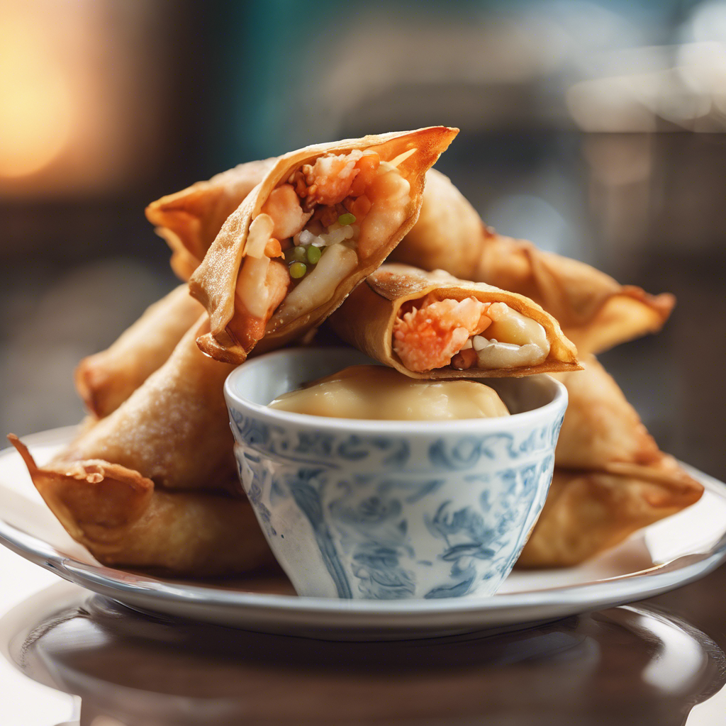 Crab Rangoon egg rolls are a delightful fusion of Chinese and American cuisine, originating from the popular Chinese-American dish, Crab Rangoon. This delectable appetizer features a creamy filling of cream cheese, crab meat, and scallions, wrapped in a crispy egg roll wrapper and deep-fried to perfection. The dish is believed to have been created in the United States, inspired by the traditional Chinese Crab Rangoon, and has since become a beloved staple in many Chinese-American restaurants. One renowned version of this dish can be found at the iconic "Lucky Dragon" restaurant in San Francisco's Chinatown, where Chef Liang infuses the egg rolls with a perfect balance of flavors and textures. The key to a stellar Crab Rangoon egg roll lies in the quality of the crab meat and the creaminess of the cream cheese filling. For a unique twist, some chefs incorporate ingredients like garlic, Worcestershire sauce, or even sweet chili sauce to elevate the flavor profile. Whether enjoyed as an appetizer or a party snack, Crab Rangoon egg rolls are a true crowd-pleaser, offering a delightful blend of savory and creamy goodness.