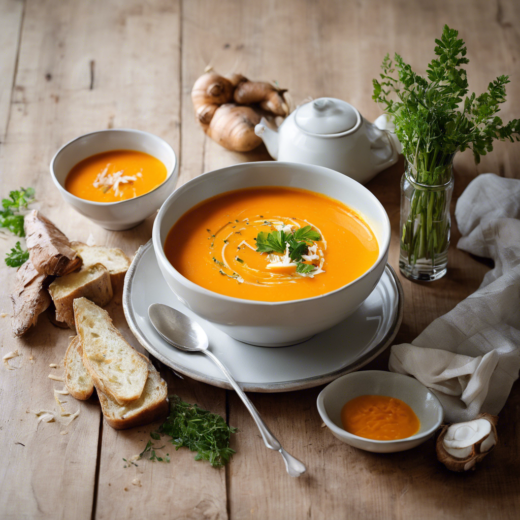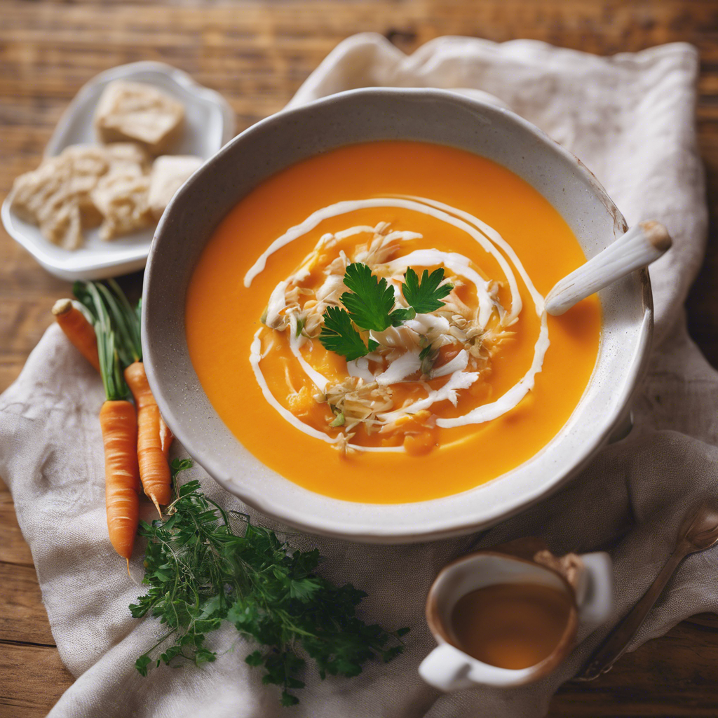 Creamy Carrot and Ginger Soup with a hint of coconut milk has a rich history rooted in the vibrant flavors of Southeast Asian cuisine. This fusion dish combines the earthy sweetness of carrots with the warm, spicy notes of ginger, elevated by the creamy richness of coconut milk. Renowned chefs like Jamie Oliver and Nigella Lawson have popularized this recipe, infusing it with their own unique twists. The dish has become a staple in upscale restaurants and health-conscious eateries, particularly in regions with a strong focus on fresh, local produce. The best versions of this soup can be found in Thai and Vietnamese restaurants, where the balance of flavors is perfected. The key to mastering this dish lies in the precise combination of carrots, ginger, and coconut milk, as well as the careful blending to achieve a velvety texture. For a unique twist, some chefs incorporate lemongrass or Thai basil for added depth of flavor. Whether enjoyed as a comforting starter or a light, nourishing meal, this soup continues to captivate food enthusiasts with its harmonious blend of ingredients.