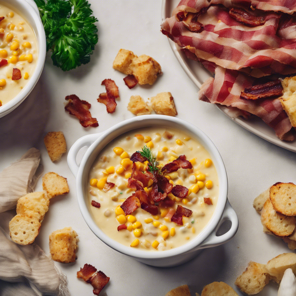 Creamy Corn Chowder with Crispy Bacon is a classic American dish that has been enjoyed for generations. This hearty soup is a staple in the culinary world, known for its rich and creamy texture, sweet corn flavor, and savory bacon crunch. The dish has its roots in the American South, where fresh corn and bacon are abundant. Chefs in the region have perfected the art of creating the perfect balance of flavors and textures in this comforting chowder. Today, the best versions of this dish can be found in Southern restaurants and diners, where chefs take pride in using locally sourced ingredients to create a truly authentic and delicious experience. The key to making the best Creamy Corn Chowder with Crispy Bacon lies in using fresh, sweet corn and high-quality bacon. The sweetness of the corn combined with the smoky, salty flavor of the bacon creates a harmonious blend of tastes that is simply irresistible. While the traditional recipe calls for simmering the chowder on the stovetop, some chefs have put their own spin on the dish by incorporating alternative methods such as using a slow cooker or instant pot to achieve the same delicious results. Whether enjoyed as a comforting meal on a chilly evening or as a crowd-pleasing appetizer at a summer cookout, Creamy Corn Chowder with Crispy Bacon is a timeless dish that continues to delight food lovers of all ages.