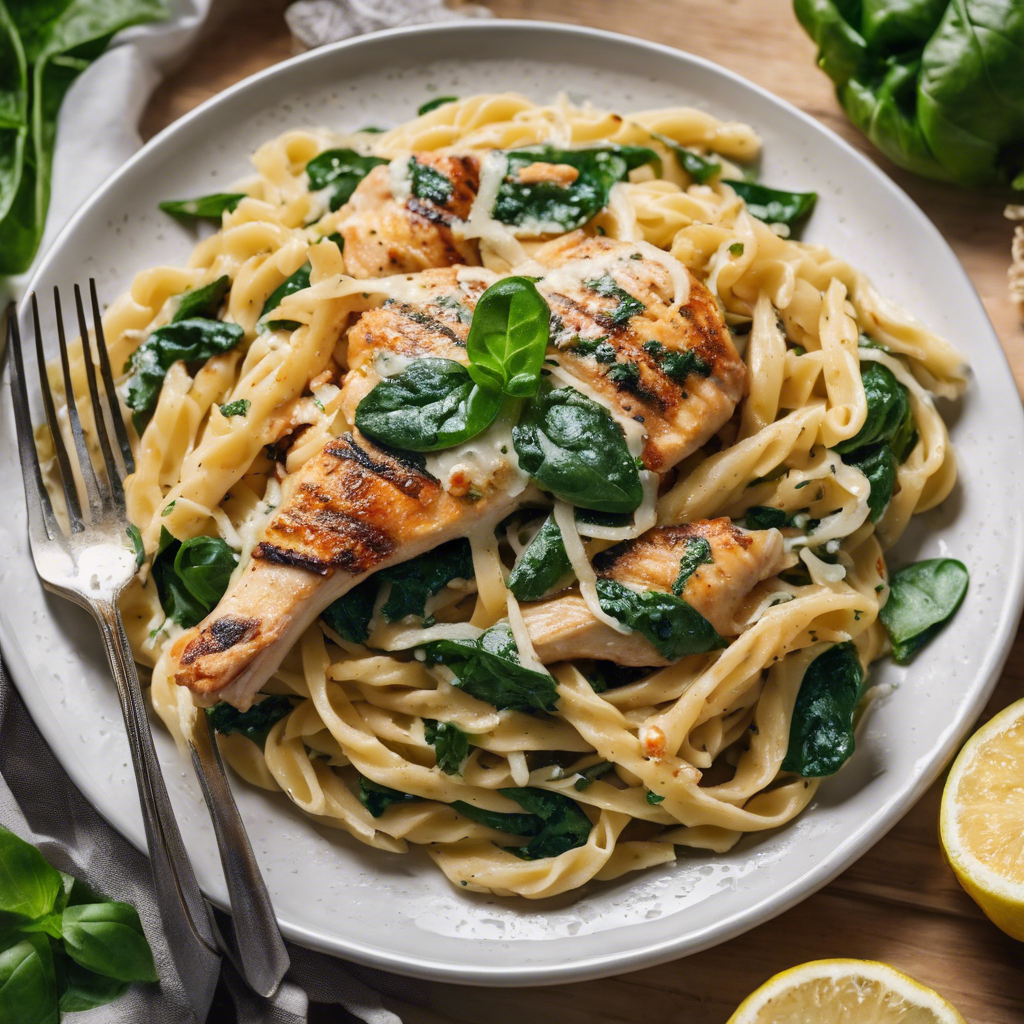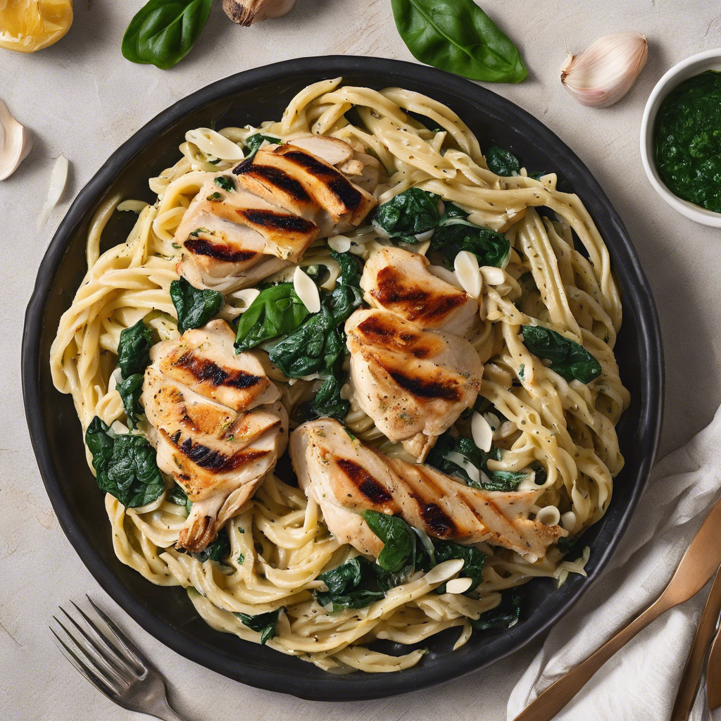 Creamy Garlic Parmesan Spinach Pasta with added grilled chicken is a delightful fusion of Italian and American flavors. This dish originated in the heart of Tuscany, where chefs combined the rich, creamy texture of Parmesan with the bold flavors of garlic and tender spinach. The addition of grilled chicken adds a savory, protein-packed twist to this classic pasta dish. Today, this mouthwatering creation can be found in top Italian restaurants across the globe, with each chef adding their own unique touch. The key to perfecting this dish lies in the balance of creamy Parmesan, aromatic garlic, and tender grilled chicken, creating a harmonious blend of flavors and textures. For a famous alternative method, some chefs opt for pan-seared chicken instead of grilled, adding a crispy exterior to the succulent meat. Whether in a cozy trattoria in Florence or a bustling bistro in New York City, this dish is a must-try for pasta lovers and chicken enthusiasts alike.