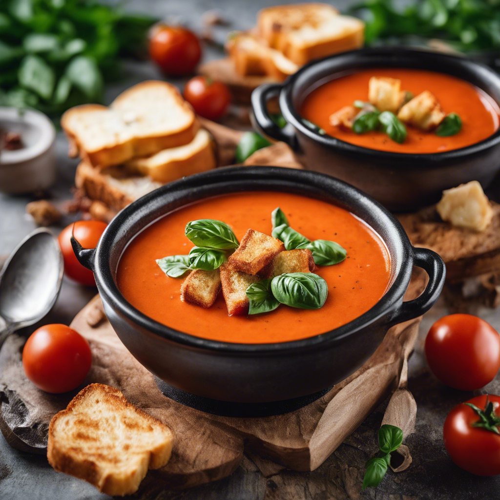 Creamy Tomato Basil Soup has a rich history dating back to ancient Rome, where the combination of tomatoes and basil was first discovered. This classic soup has evolved over the centuries, with each region adding its own unique twist. In the 18th century, Italian chefs perfected the creamy texture by adding heavy cream, creating the beloved dish we know today. The addition of grilled cheese croutons takes this traditional soup to a whole new level. The croutons are made by grilling bite-sized pieces of cheese until they are crispy and golden brown, adding a delightful crunch and cheesy flavor to each spoonful. In modern times, renowned chefs like Ina Garten and Gordon Ramsay have popularized this indulgent twist on the classic soup, making it a staple in upscale restaurants and home kitchens alike. The best version of this dish can be found in cozy Italian trattorias, where the soup is made with ripe San Marzano tomatoes, fresh basil, and a generous dollop of creamy mascarpone. To make the perfect Creamy Tomato Basil Soup with grilled cheese croutons, it's essential to use high-quality tomatoes and fresh basil for an authentic flavor. Additionally, choosing the right cheese for the croutons, such as sharp cheddar or gooey mozzarella, is crucial for achieving that irresistible cheesy goodness. For a famous alternative method, some chefs opt to blend the grilled cheese directly into the soup, creating a velvety, cheesy masterpiece. Whether enjoyed as a comforting meal on a chilly evening or served as an elegant starter at a dinner party, Creamy Tomato Basil Soup with grilled cheese croutons is a timeless favorite that continues to delight food enthusiasts around the world.