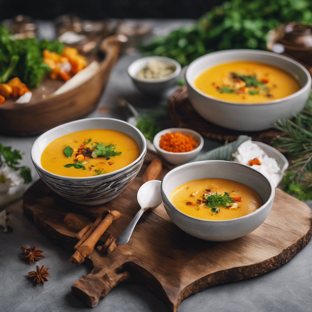 Creamy Vegetable Soup with Coconut Milk and curry spices is a fusion of flavors that originated in Southeast Asia. This dish combines the rich, creamy texture of coconut milk with the aromatic and spicy notes of curry spices. The addition of fresh, seasonal vegetables adds a burst of color and nutrition to the dish. Renowned chefs in Thailand and Malaysia have perfected this recipe, infusing it with their own unique blend of spices and locally sourced vegetables. The dish has gained popularity in Western countries as well, with many restaurants offering their own take on this flavorful soup. The key to a delicious Creamy Vegetable Soup with Coconut Milk and curry spices lies in the balance of flavors. The creaminess of the coconut milk should complement, not overpower, the boldness of the curry spices. Fresh, high-quality vegetables are essential for a vibrant and satisfying dish. For a twist on the traditional recipe, some chefs incorporate lemongrass, kaffir lime leaves, or galangal to add a citrusy and aromatic dimension to the soup. This variation adds a refreshing and zesty element to the dish, elevating it to new heights of culinary delight. Today, the best versions of this dish can be found in authentic Thai and Malaysian restaurants, where skilled chefs expertly blend the flavors of coconut milk and curry spices to create a harmonious and unforgettable dining experience. Whether enjoyed as a starter or a main course, Creamy Vegetable Soup with Coconut Milk and curry spices is a delightful culinary journey that tantalizes the taste buds and warms the soul.