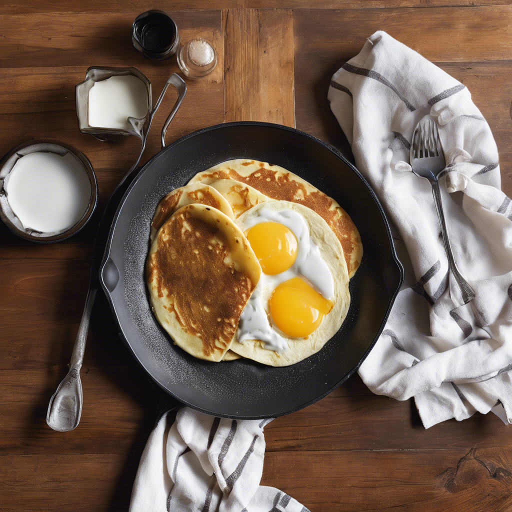 - Pour 1/4 cup of batter into the skillet, swirling it around to evenly coat the bottom.
