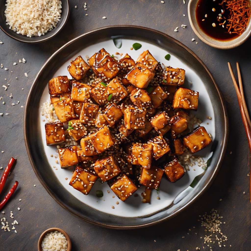 The history of Crispy Baked Sesame Tofu with a spicy glaze can be traced back to the fusion of Asian and Western culinary traditions. This dish originated as a vegetarian alternative to traditional meat-based dishes, gaining popularity in health-conscious communities. Renowned chefs like Yotam Ottolenghi and Ming Tsai have contributed to its evolution, incorporating bold flavors and innovative cooking techniques. Today, this dish can be found in trendy plant-based eateries in cosmopolitan cities like New York and Los Angeles. The key to achieving the perfect balance of textures and flavors lies in the crispy tofu, nutty sesame seeds, and the fiery kick of the spicy glaze. For a unique twist, some chefs infuse the tofu with a marinade of soy sauce, ginger, and garlic before baking, enhancing its savory profile. Whether enjoyed as a standalone appetizer or paired with a bed of fresh greens, this dish continues to captivate food enthusiasts with its irresistible combination of crunch and heat. For the best version of this dish, seek out restaurants that prioritize using high-quality tofu and a well-balanced spicy glaze.