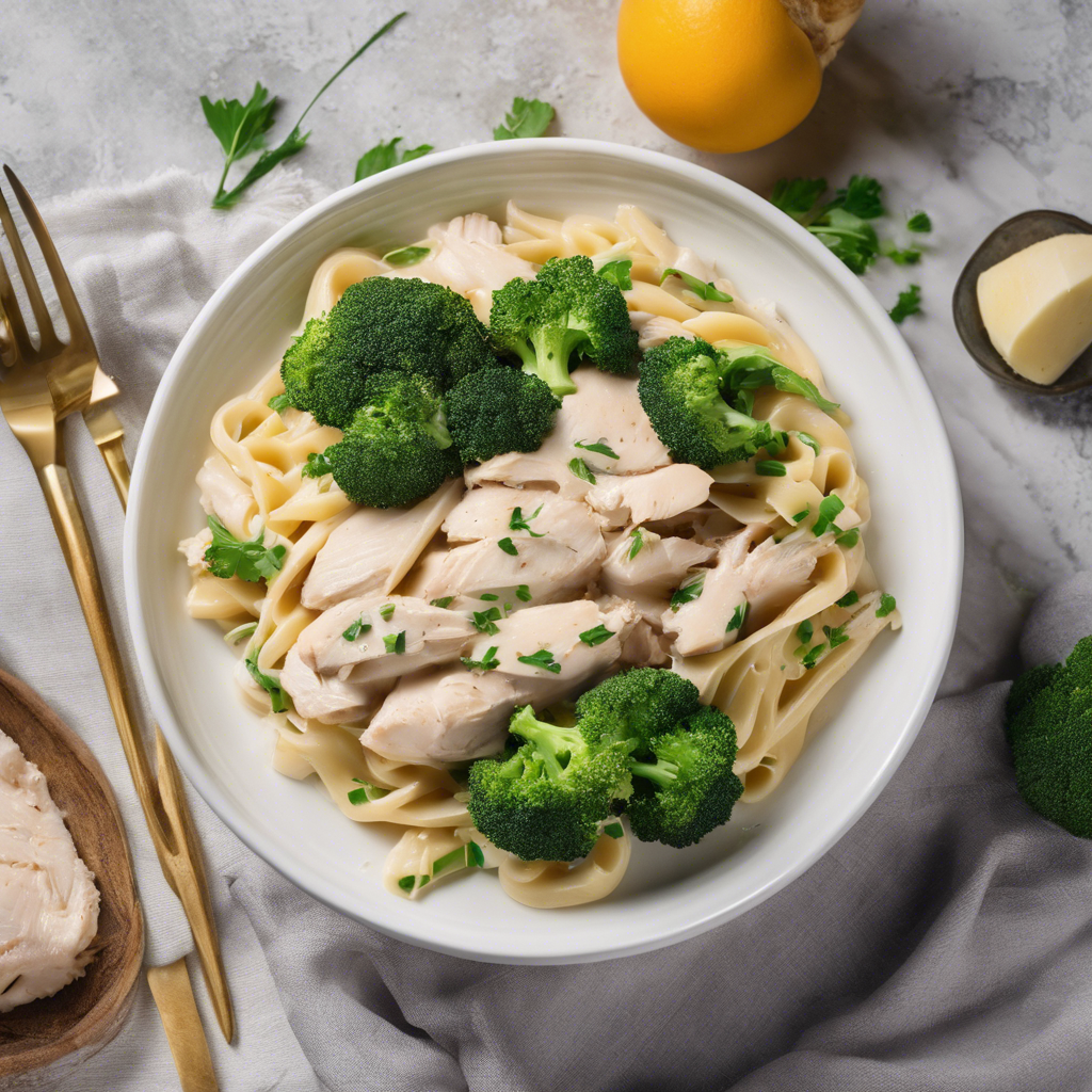 - Serve the chicken alfredo with broccoli over cooked fettuccine pasta. Enjoy!