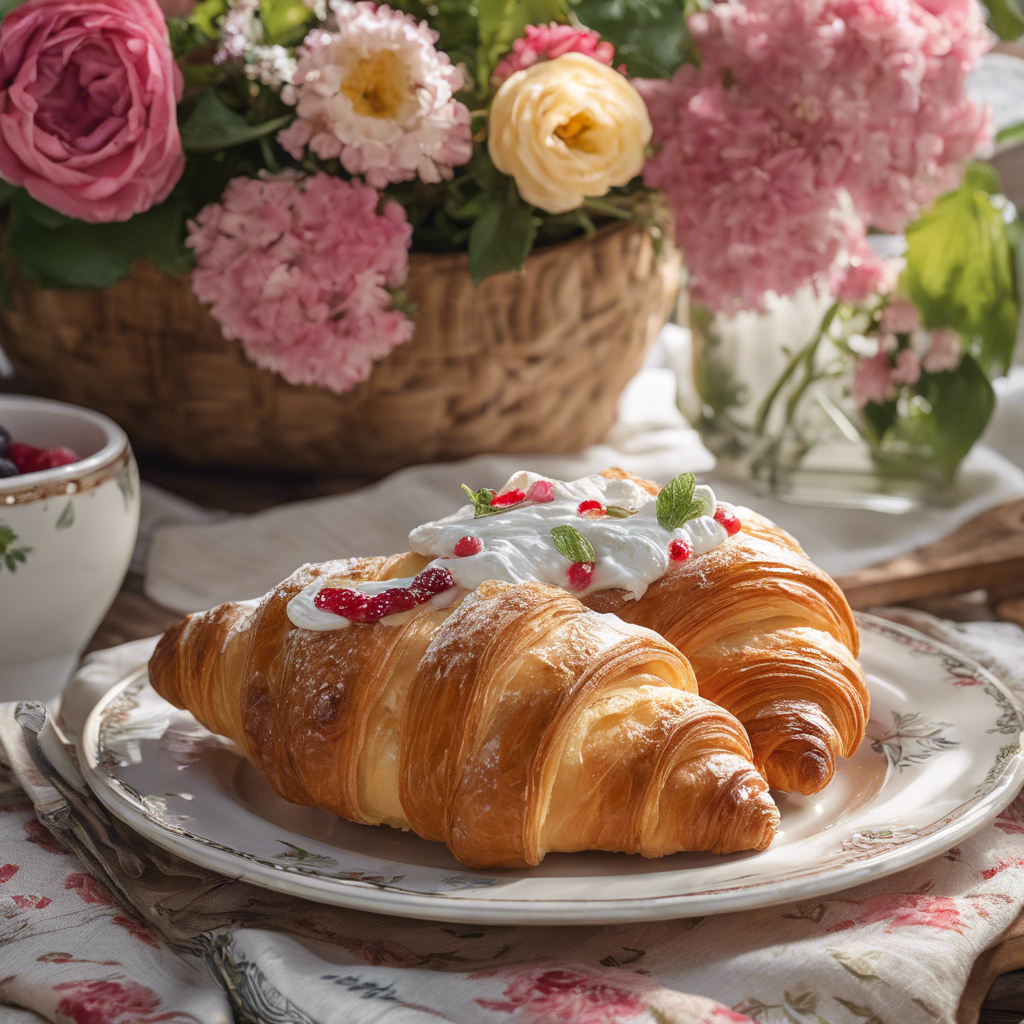 The croissant with cream cheese and fruit preserves is a delightful pastry that originated in France. This delectable treat combines the buttery, flaky goodness of a croissant with the creamy richness of cream cheese and the sweet tang of fruit preserves. The dish has become a popular choice for breakfast or brunch in many cafes and bakeries around the world. In the 1980s, renowned French chef Pierre Herme elevated the classic croissant by adding a layer of creamy, tangy cream cheese and a generous dollop of vibrant fruit preserves. This innovative twist quickly gained popularity and became a staple in many French patisseries. Today, the best versions of this dish can be found in artisanal bakeries and cafes that prioritize using high-quality, freshly baked croissants, rich and smooth cream cheese, and flavorful fruit preserves. The key to a perfect croissant with cream cheese and fruit preserves lies in the balance of flavors and textures – the buttery croissant should be perfectly complemented by the creamy, slightly tangy cream cheese and the sweet, fruity preserves. For those looking to recreate this indulgent treat at home, it's essential to use a high-quality croissant as the base. Additionally, experimenting with different fruit preserves, such as raspberry, apricot, or strawberry, can add a unique twist to the classic recipe. Some alternative methods for making this dish include toasting the croissant before adding the cream cheese and fruit preserves for an extra layer of flavor and texture. Whether enjoyed as a leisurely breakfast or a delightful afternoon snack, the croissant with cream cheese and fruit preserves continues to be a beloved pastry that perfectly balances indulgence and sophistication.