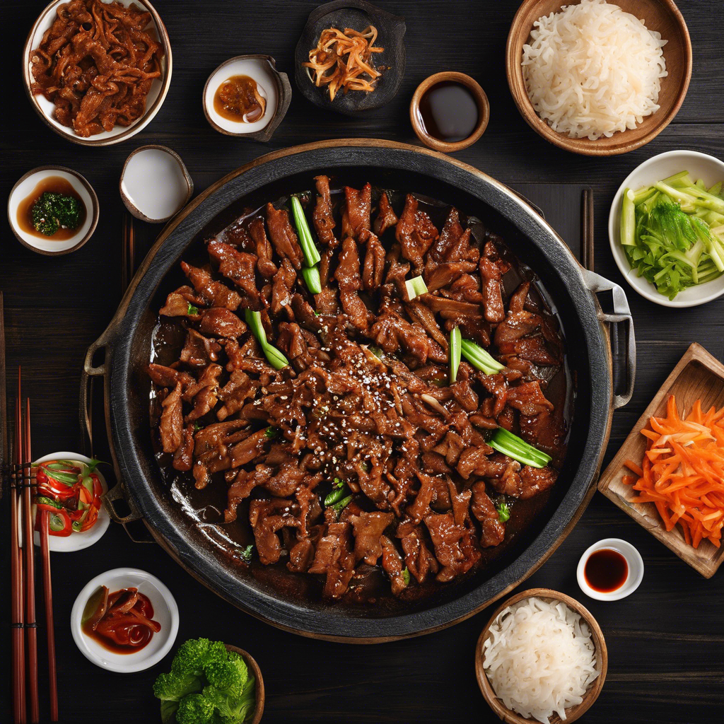 Dwaeji Bulgogi, also known as Korean spicy pork, is a traditional dish with a rich history. Originating in South Korea, this flavorful dish features thinly sliced pork marinated in a blend of soy sauce, ginger, garlic, and Korean chili paste, then stir-fried to perfection. The dish has been a staple in Korean cuisine for centuries, with its roots in the Gyeongsang province. Renowned chefs and restaurants in Seoul, such as Gogung and Mapo Jeong Daepo, have perfected the art of preparing Dwaeji Bulgogi, drawing in locals and tourists alike. For an authentic experience, head to South Korea to savor the best version of this dish. The key to mastering Dwaeji Bulgogi lies in the balance of sweet, savory, and spicy flavors, making it a must-try for any food enthusiast.