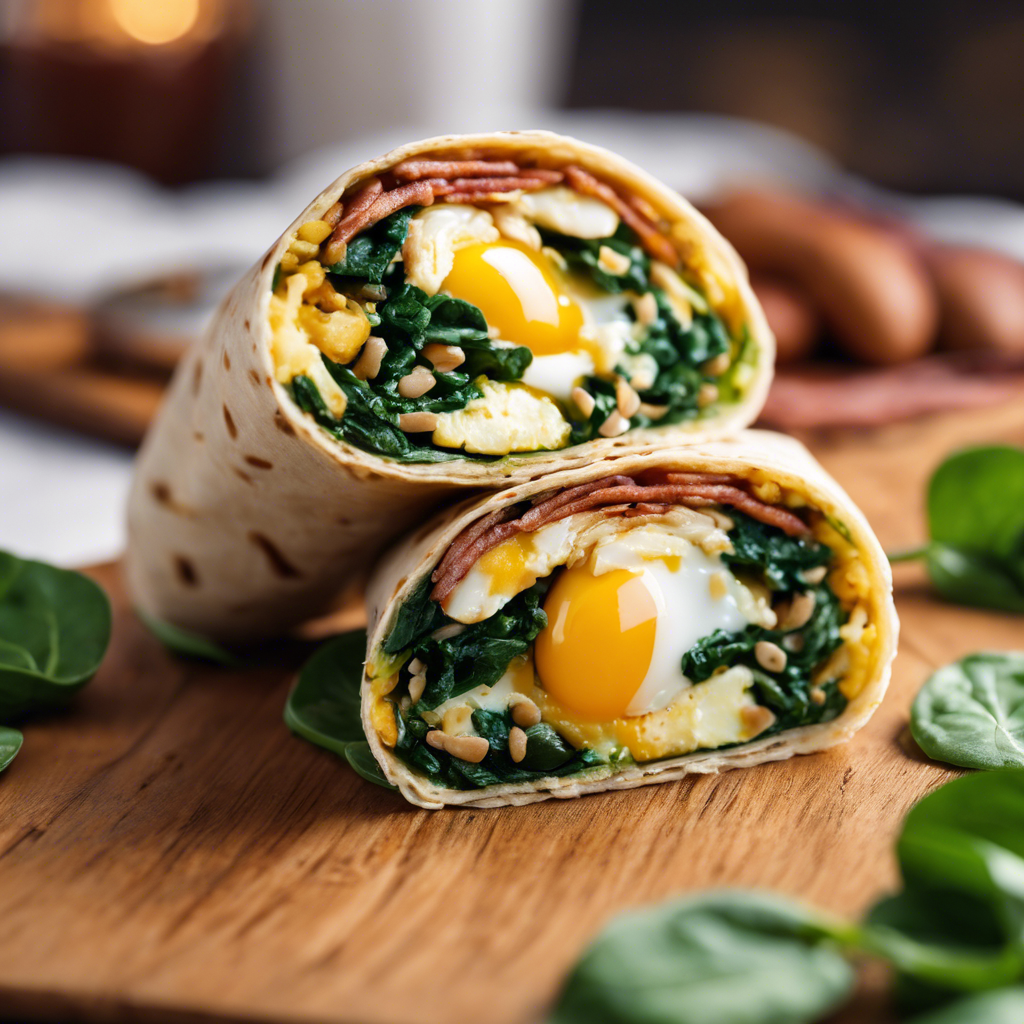 - Slice the wraps in half and serve immediately. Enjoy your delicious Egg and Spinach Breakfast Wrap!