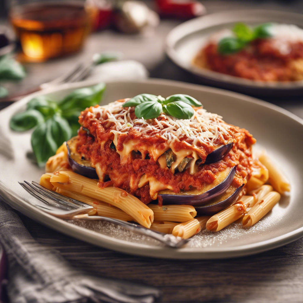 Eggplant Parmesan with Penne is a classic Italian dish that has been enjoyed for generations. This hearty and flavorful dish originated in Southern Italy, where eggplants are abundant and a staple in the local cuisine. The dish consists of thinly sliced eggplant, breaded and fried to perfection, then layered with marinara sauce, mozzarella, and Parmesan cheese. The addition of penne pasta adds a delightful twist to this traditional recipe, creating a satisfying and comforting meal. One of the most famous versions of this dish can be found in the bustling kitchens of Italian restaurants in Naples, where talented chefs meticulously prepare each component with love and expertise. The key to a perfect Eggplant Parmesan with Penne lies in the quality of the ingredients - ripe, firm eggplants, flavorful marinara sauce, and al dente penne pasta. The dish is then baked to golden perfection, allowing the flavors to meld together beautifully. For a unique twist on this classic dish, some chefs opt to grill the eggplant slices instead of frying them, adding a smoky depth of flavor. This alternative method provides a lighter and healthier take on the traditional Eggplant Parmesan with Penne, without compromising on taste. Today, this beloved dish can be found in Italian eateries around the world, each offering their own take on the timeless recipe. Whether enjoyed in a cozy trattoria in Rome or a bustling pizzeria in New York City, Eggplant Parmesan with Penne continues to delight diners with its rich flavors and comforting appeal.