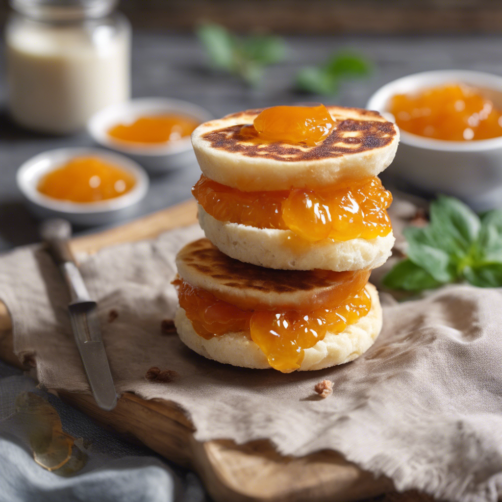 The English Muffin with Marmalade has a rich history dating back to 18th century England. The English muffin, known for its nooks and crannies, was first popularized in the United States by Samuel Bath Thomas in the late 1800s. The addition of marmalade, a citrus fruit preserve, adds a delightful tangy sweetness to the toasted muffin. This classic combination has become a beloved breakfast or tea-time treat, often associated with quaint English cafes and traditional American diners. For the best version of this dish, seek out artisanal English muffins and high-quality marmalade. Alternatively, try making your own marmalade for a truly authentic experience.