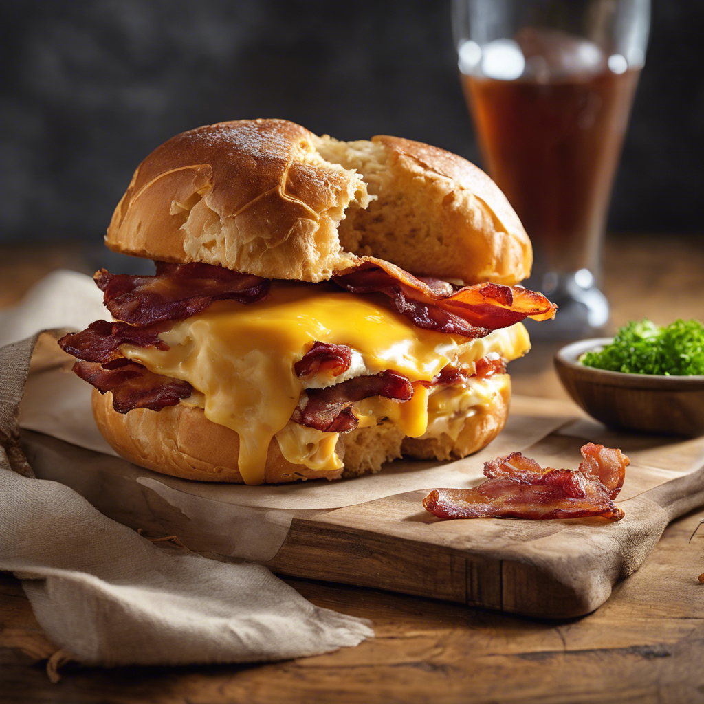 The Extra Cheesy Pretzel Roll Sandwich with bacon is a mouthwatering creation that combines the rich, savory flavors of bacon with the irresistible cheesiness of a pretzel roll. This delectable sandwich has a fascinating history, with its origins rooted in the heart of Pennsylvania Dutch country. In the 19th century, German immigrants brought their love for pretzels to the United States, particularly to the state of Pennsylvania. Over time, the pretzel roll became a staple in the region's culinary landscape, often used as a base for hearty sandwiches. The addition of extra cheese and crispy bacon to the pretzel roll sandwich elevated it to a whole new level of indulgence. The gooey, melted cheese complements the smoky, salty flavor of the bacon, creating a symphony of tastes and textures. Today, this iconic sandwich can be found in numerous eateries across the United States, with variations in recipes and presentations. Some chefs prefer to use a blend of sharp cheddar and Swiss cheese for an extra flavorful punch, while others may opt for a creamy cheese sauce to enhance the sandwich's richness. For the best version of this dish, head to artisanal bakeries or specialty sandwich shops known for their commitment to quality ingredients. The key to a perfect Extra Cheesy Pretzel Roll Sandwich with bacon lies in the quality of the pretzel roll – it should be soft and chewy with a deep, golden-brown crust. Additionally, using thick-cut, crispy bacon is essential to provide a satisfying crunch in every bite. For those who enjoy experimenting in the kitchen, consider alternative methods such as adding a touch of honey mustard or spicy aioli to the sandwich for an extra kick. Whether enjoyed as a quick lunch or a comforting dinner, the Extra Cheesy Pretzel Roll Sandwich with bacon is a true delight for food enthusiasts seeking a delightful blend of flavors.