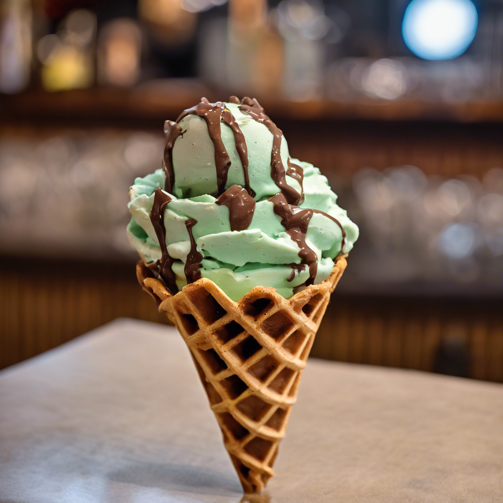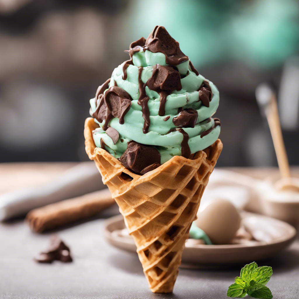 Extra Chocolate Chip Mint Ice Cream served in a chocolate-dipped waffle cone is a decadent treat that combines the refreshing taste of mint with the richness of chocolate. This indulgent dessert has a rich history, with its origins dating back to the 1980s when innovative chefs in the United States began experimenting with unique ice cream flavors. Today, this delightful creation can be found in artisanal ice cream shops and dessert parlors across the country. The key to perfecting this dessert lies in the quality of the chocolate, the freshness of the mint, and the crispness of the waffle cone. For the best version of this dish, head to renowned ice cream parlors in cities like New York, San Francisco, or Chicago, where talented chefs craft this delightful treat with precision and flair. Whether you're a fan of classic ice cream flavors or a daring foodie seeking a new culinary adventure, this delightful dessert is sure to satisfy your sweet tooth.