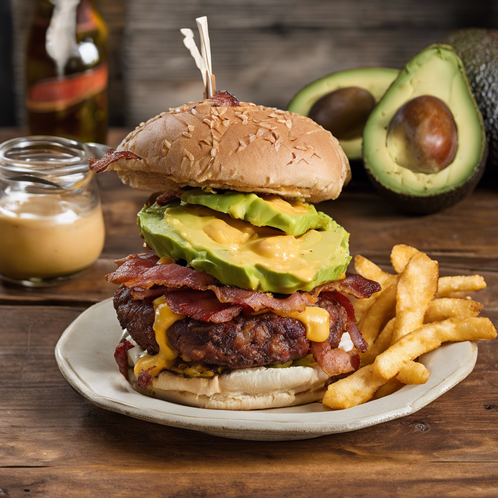The Extra Crispy Pimento Cheese Bacon Burger with added avocado is a mouthwatering Southern creation that has taken the culinary world by storm. Originating in the heart of the South, this burger is a delightful fusion of flavors and textures. The crispy bacon adds a smoky crunch, while the creamy pimento cheese brings a tangy richness. The addition of ripe avocado lends a buttery, velvety finish to this already indulgent dish. Renowned chefs in the Southern United States, particularly in cities like Charleston and Atlanta, have perfected this burger, elevating it to a beloved regional specialty. For the best version of this dish, head to acclaimed Southern eateries known for their innovative take on classic comfort food. The key to nailing this dish lies in the quality of the ingredients - from the perfectly ripe avocado to the artisanal pimento cheese. Whether it's a backyard barbecue or a top-notch restaurant, this burger is a must-try for any food enthusiast.