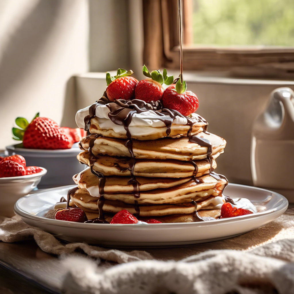 Fluffy Chocolate Chip Pancakes topped with fresh strawberries and whipped cream have a rich history dating back to the early 20th century. This delectable dish is a beloved breakfast and brunch staple, known for its indulgent combination of sweet flavors and fluffy texture. Renowned chefs in regions like New England and the South have perfected this recipe, incorporating local ingredients and culinary techniques to create the ultimate version of this dish. The key to achieving the perfect Fluffy Chocolate Chip Pancakes lies in using high-quality chocolate chips and fresh, ripe strawberries, while the whipped cream adds a delightful creamy finish. Today, the best versions of this dish can be found in quaint, family-owned diners and upscale brunch spots, where chefs take pride in serving up this classic with a modern twist. Whether you're a home cook or a seasoned chef, mastering the art of making Fluffy Chocolate Chip Pancakes with fresh strawberries and whipped cream is sure to impress any breakfast enthusiast.