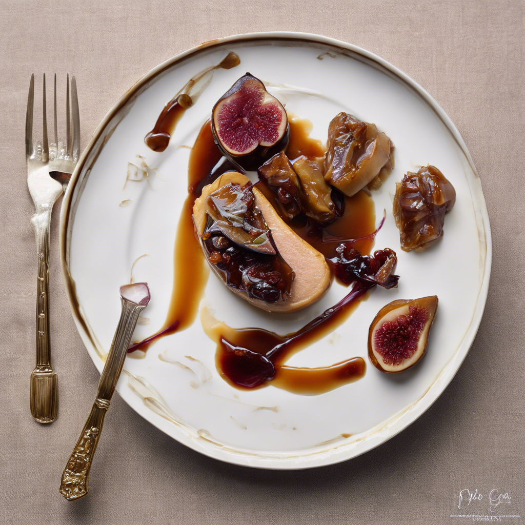 - To serve, place a spoonful of the fig compote on each plate, top with a slice of seared foie gras, and a spoonful of caramelized onions. Drizzle the port wine reduction sauce over the foie gras and around the plate. Serve immediately and enjoy!