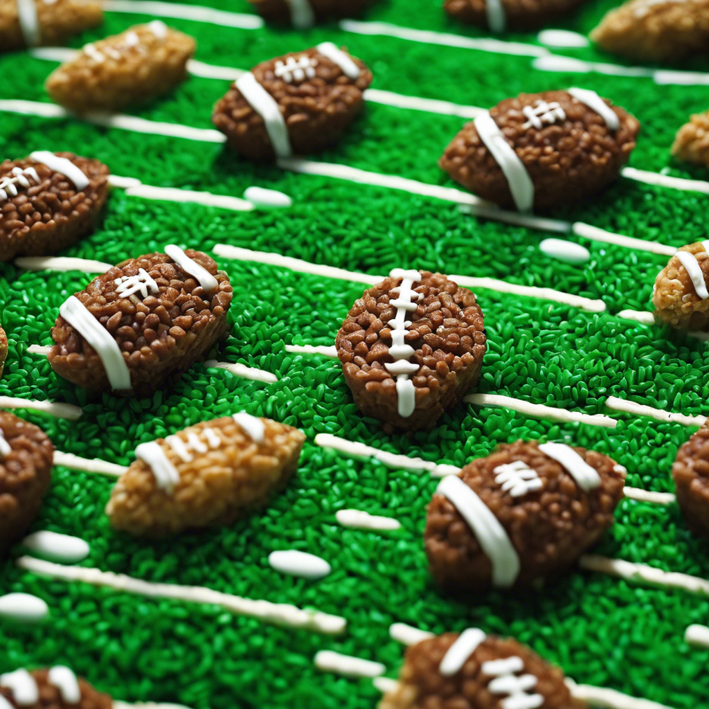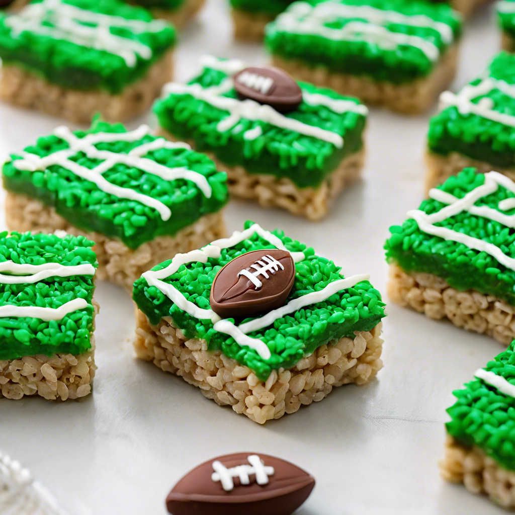 Football Field Rice Krispie Treats are a fun and delicious twist on the classic marshmallow and cereal dessert. This popular treat is often made to celebrate football season, tailgating parties, or game day gatherings. The history of Football Field Rice Krispie Treats is not well-documented, but it's believed to have originated in the United States as a creative way to combine the love of football with the love of sweet treats. Chefs and home cooks alike have put their own spin on this dessert, often using green food coloring to create the "field" and white icing to add yard lines and goalposts, making it resemble a football field. Some variations include adding chocolate chips or using different types of cereal to add texture and flavor. In terms of the best version of this dish, it's all about getting the proportions right to achieve the perfect balance of gooey marshmallow and crispy cereal. Additionally, attention to detail in creating the football field design can take this treat to the next level. While there are no specific restaurants or regions associated with Football Field Rice Krispie Treats, they are a popular choice for sports-themed events and can be found at tailgates, parties, and bake sales across the country. For those looking for a famous alternative method, some bakers have used cocoa-flavored cereal to create a chocolate football field, adding a unique twist to the traditional recipe. Whether you're a football fan or just a lover of sweet treats, Football Field Rice Krispie Treats are a playful and tasty way to enjoy a classic dessert.