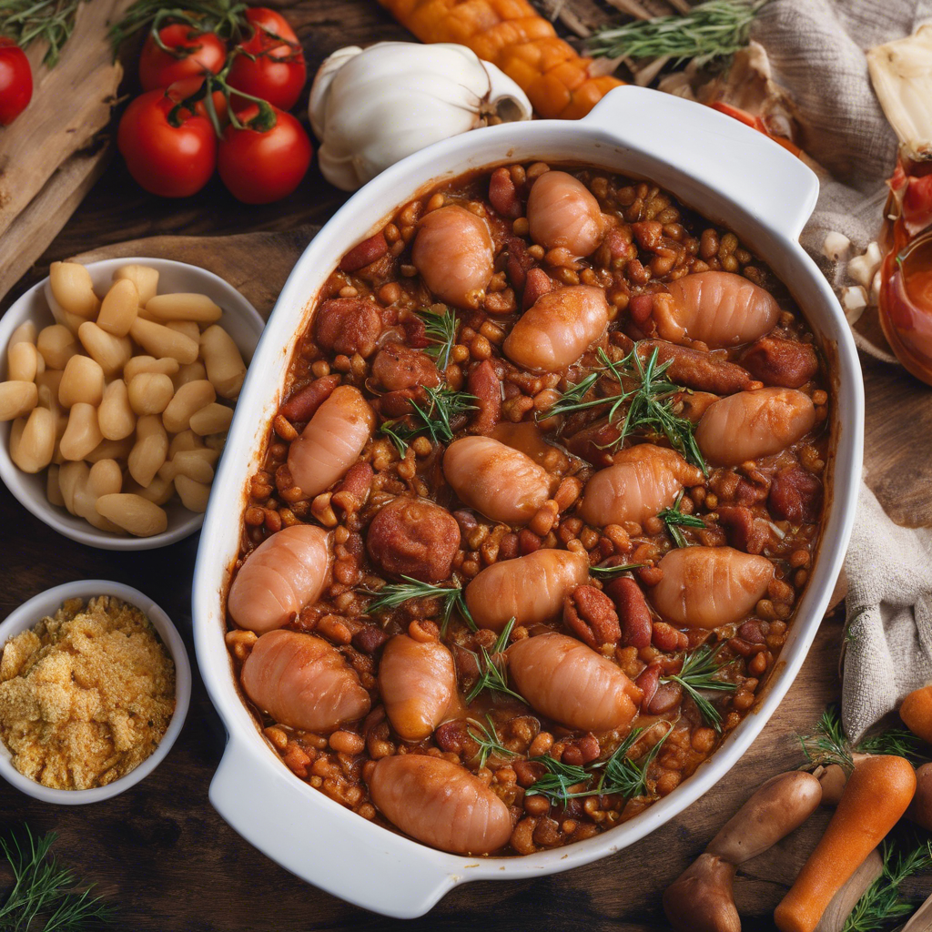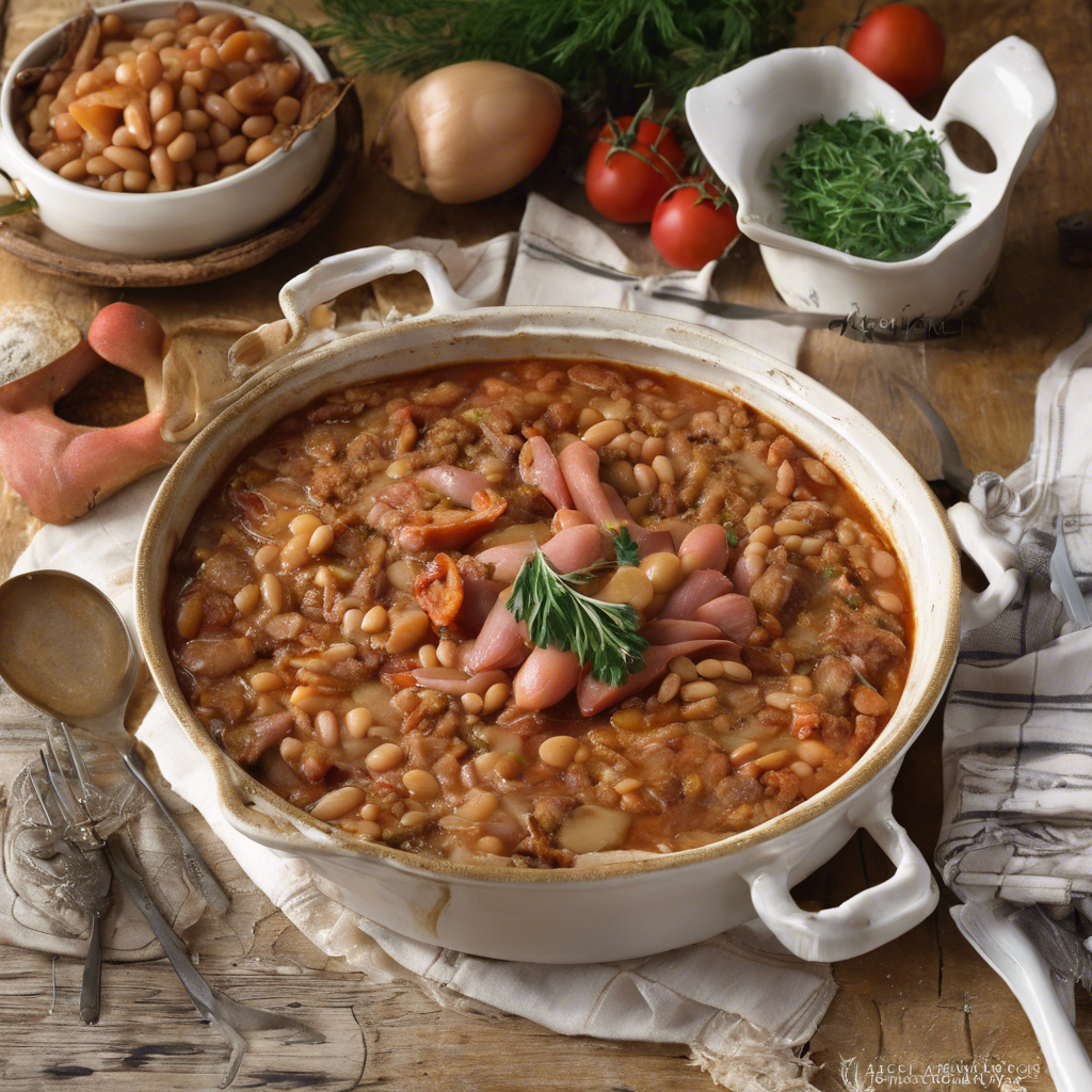 - Return the bacon, chicken thighs, and pork sausages to the pot. Bring to a simmer, then cover and cook for 2-3 hours, or until the beans are tender and the meat is cooked through.