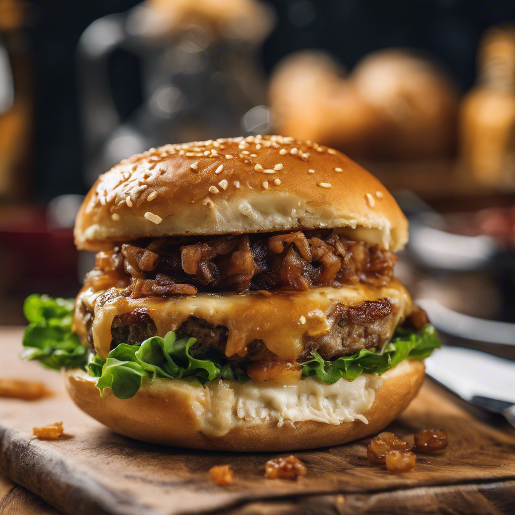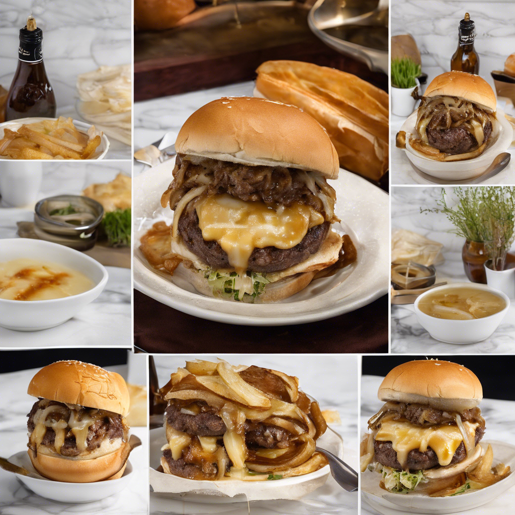 The French Onion Soup Burger is a delectable fusion of two beloved dishes - the classic French onion soup and a juicy burger. This innovative creation is said to have originated in the United States, where chefs sought to combine the rich, savory flavors of French onion soup with the hearty satisfaction of a burger. The dish gained popularity for its unique blend of caramelized onions, melted Gruyère cheese, and a juicy beef patty, all sandwiched between two slices of toasted brioche or onion roll. Today, this mouthwatering creation can be found in upscale bistros and trendy burger joints across the country, with each chef adding their own twist to the recipe. For the best version of this dish, head to renowned restaurants in cities like New York, Chicago, or Los Angeles, where culinary experts have perfected the art of crafting the ultimate French Onion Soup Burger. To nail this dish at home, focus on caramelizing the onions to perfection and selecting high-quality Gruyère cheese to achieve that signature French onion soup flavor. Whether you're a fan of French cuisine or a burger enthusiast, the French Onion Soup Burger is a must-try for its indulgent, comforting, and utterly delicious combination of flavors.