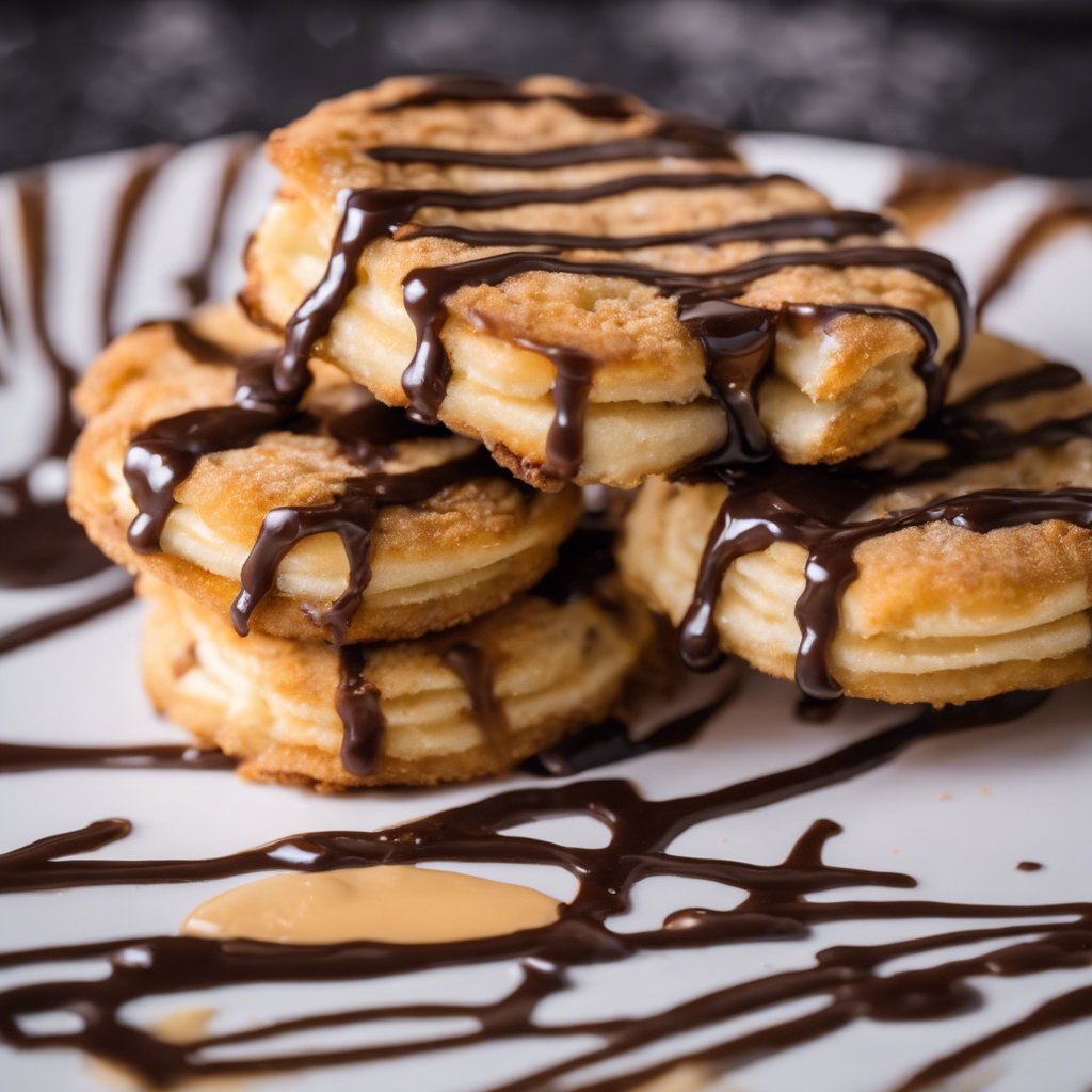 Fried Oreos with Chocolate Drizzle is a delectable treat that originated in the southern United States. This indulgent dessert gained popularity at state fairs and carnivals, where vendors would batter and deep-fry the iconic sandwich cookies to crispy perfection. The warm, gooey Oreos are then drizzled with rich, velvety chocolate for an irresistible finish. Chefs across the country have put their own spin on this beloved dish, adding unique touches to the recipe. Today, this delightful creation can be found in various restaurants and food trucks, especially in the southern regions of the US. For the best version of this dish, look for a crispy, golden batter and a decadent chocolate drizzle that perfectly complements the Oreo's sweetness. Whether enjoyed at a local fair or made at home, Fried Oreos with Chocolate Drizzle are a must-try for any dessert enthusiast.