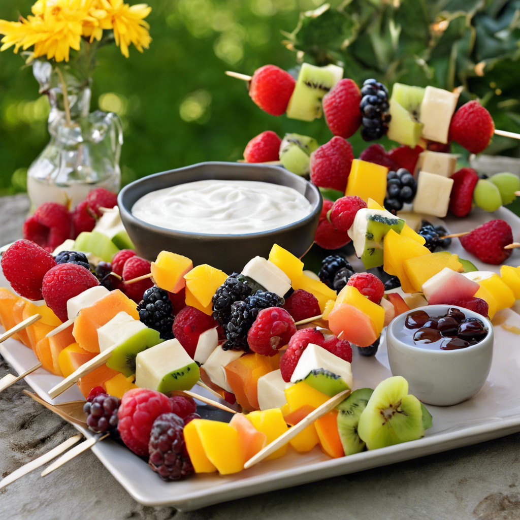 - Serve the fruit kabobs with the prepared yogurt dip on the side for dipping.