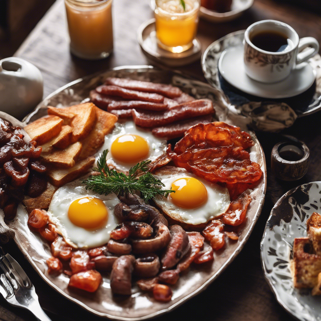 The Full English Breakfast, also known as a "fry-up," is a traditional British breakfast that dates back to the 13th century. It typically includes bacon, eggs, sausages, baked beans, grilled tomatoes, mushrooms, black pudding, and toast. The dish gained popularity during the Victorian era and has since become a staple of British cuisine. Chefs like Fergus Henderson and Gordon Ramsay have put their own spin on the classic dish, incorporating high-quality, locally sourced ingredients. While the best version of this dish can be found in local cafes and bed and breakfasts across the UK, some renowned restaurants in London, such as The Wolseley, are known for serving exceptional Full English Breakfasts. The key to a perfect Full English Breakfast lies in the quality of the ingredients and the careful preparation of each component. For a vegetarian alternative, some establishments offer a "Full English" with meat-free sausages and vegetarian black pudding. Whether enjoyed at a cozy countryside inn or a bustling urban eatery, the Full English Breakfast remains a beloved and iconic meal in British culinary tradition.