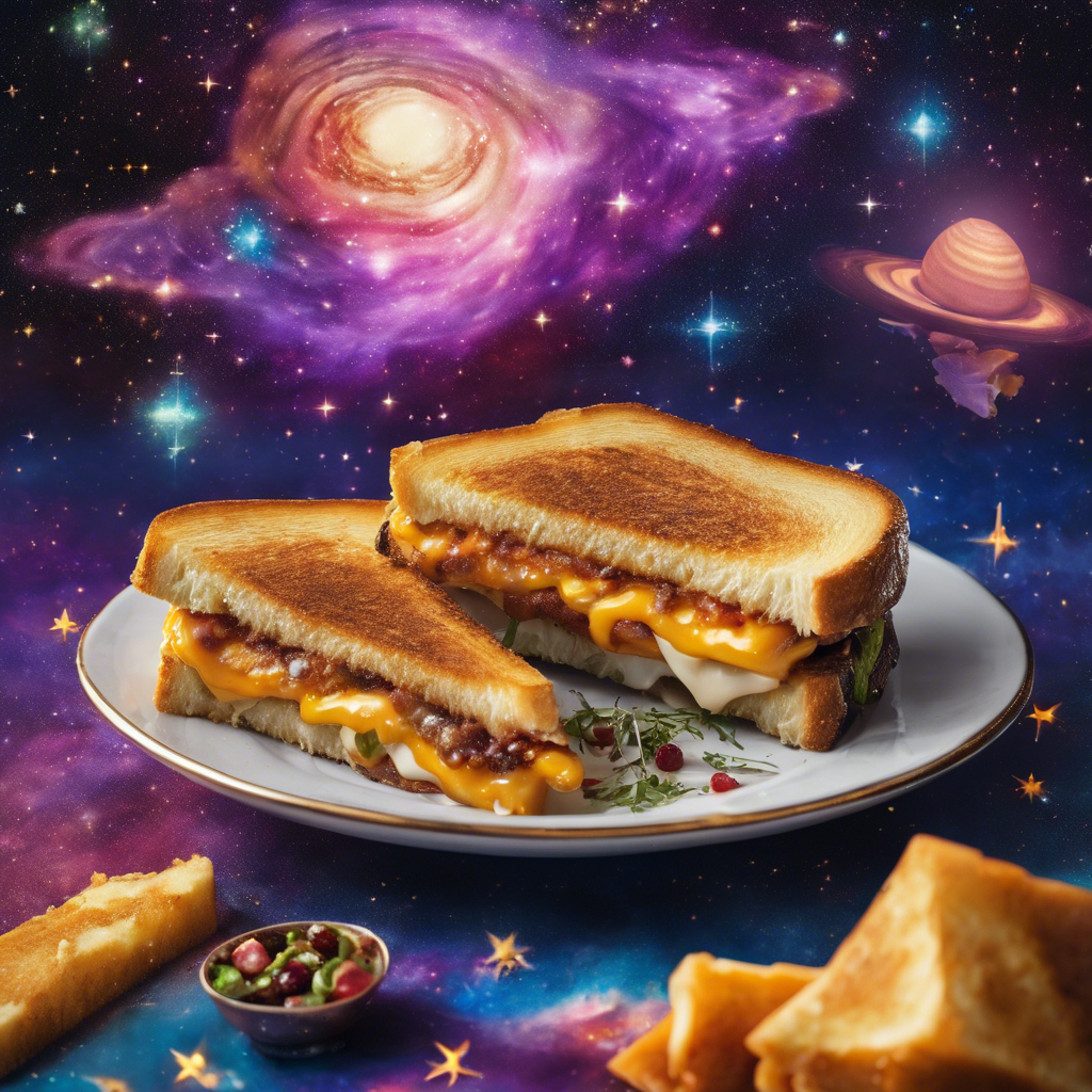 Galaxy Grilled Cheese is a modern twist on the classic comfort food, featuring a blend of gooey, melted cheeses sandwiched between buttery, golden-brown bread. This celestial creation has captured the hearts and taste buds of food enthusiasts across the galaxy. Originating in the creative kitchens of avant-garde chefs, this cosmic concoction has become a star in the culinary world. The best versions of this dish can be found in trendy eateries and food trucks in urban hubs, where chefs experiment with artisanal cheeses, gourmet breads, and tantalizing add-ins like truffle oil or caramelized onions. The key to a stellar Galaxy Grilled Cheese lies in the perfect balance of flavors and textures, achieved through the careful selection of cheeses and the art of achieving the ideal golden crust. Whether it's a classic cheddar and mozzarella blend or an out-of-this-world combination of gouda, brie, and blue cheese, the key is to let the flavors harmonize and shine. For those seeking a famous alternative method, some chefs elevate this dish by adding unexpected ingredients like fig jam or bacon jam, taking the Galaxy Grilled Cheese to new heights of gastronomic delight.