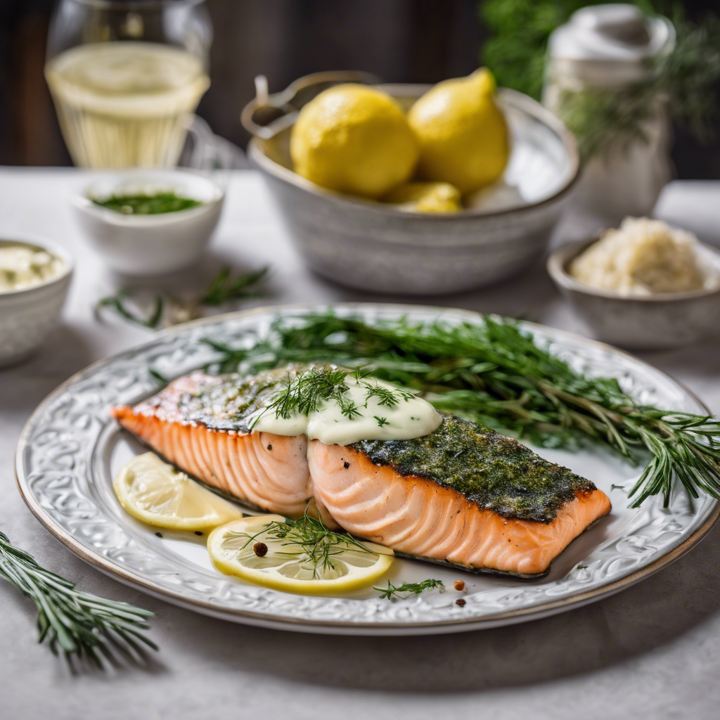 The history of Garlic and Herb Roasted Salmon with a lemon dill sauce can be traced back to the Mediterranean region, where the combination of garlic, herbs, and seafood has been a culinary tradition for centuries. This dish has evolved over time, with various chefs and restaurants adding their own unique twists to the recipe. The flavorful blend of garlic and herbs complements the rich, buttery texture of the salmon, while the zesty lemon dill sauce adds a refreshing and tangy finish. Today, this dish is a popular choice in seafood restaurants and is often enjoyed as a healthy and delicious meal. For the best version of this dish, sourcing fresh, high-quality salmon and using a generous amount of garlic and herbs is essential. Alternatively, some chefs may opt for grilling or pan-searing the salmon for a different flavor profile. Whether enjoyed at a coastal restaurant or prepared at home, Garlic and Herb Roasted Salmon with a lemon dill sauce is a delightful dish that celebrates the natural flavors of the sea.