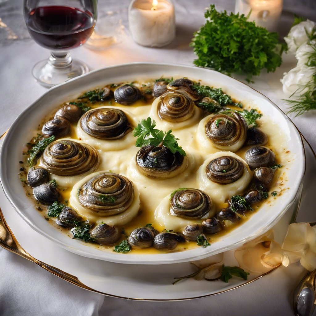 The history of Garlic Butter Escargot served on a bed of creamy mashed potatoes can be traced back to the Burgundy region of France. This classic French dish has been enjoyed for centuries, with its origins dating back to the Roman Empire. The combination of tender escargot cooked in a rich garlic butter sauce, served atop a bed of creamy, buttery mashed potatoes, creates a decadent and indulgent culinary experience. In modern times, renowned chefs like Julia Child and Jacques Pépin have popularized this dish, elevating it to a gourmet status. Today, it is a staple in upscale French restaurants around the world, known for its luxurious flavors and elegant presentation. The key to a perfect Garlic Butter Escargot lies in the quality of the ingredients. The escargot must be tender and flavorful, while the garlic butter sauce should be rich and aromatic. The creamy mashed potatoes should be velvety smooth, providing the perfect base for the escargot to shine. For those seeking the best version of this dish, a visit to a Michelin-starred French restaurant in Paris or Lyon is highly recommended. These establishments are known for their meticulous attention to detail and commitment to using the finest ingredients, ensuring an unforgettable dining experience. Alternatively, adventurous home cooks can try their hand at making this dish using alternative methods, such as incorporating herbs like parsley and thyme into the garlic butter sauce, or experimenting with different varieties of potatoes for the mashed potatoes. The result is a dish that is both comforting and sophisticated, perfect for a special occasion or a luxurious night in.