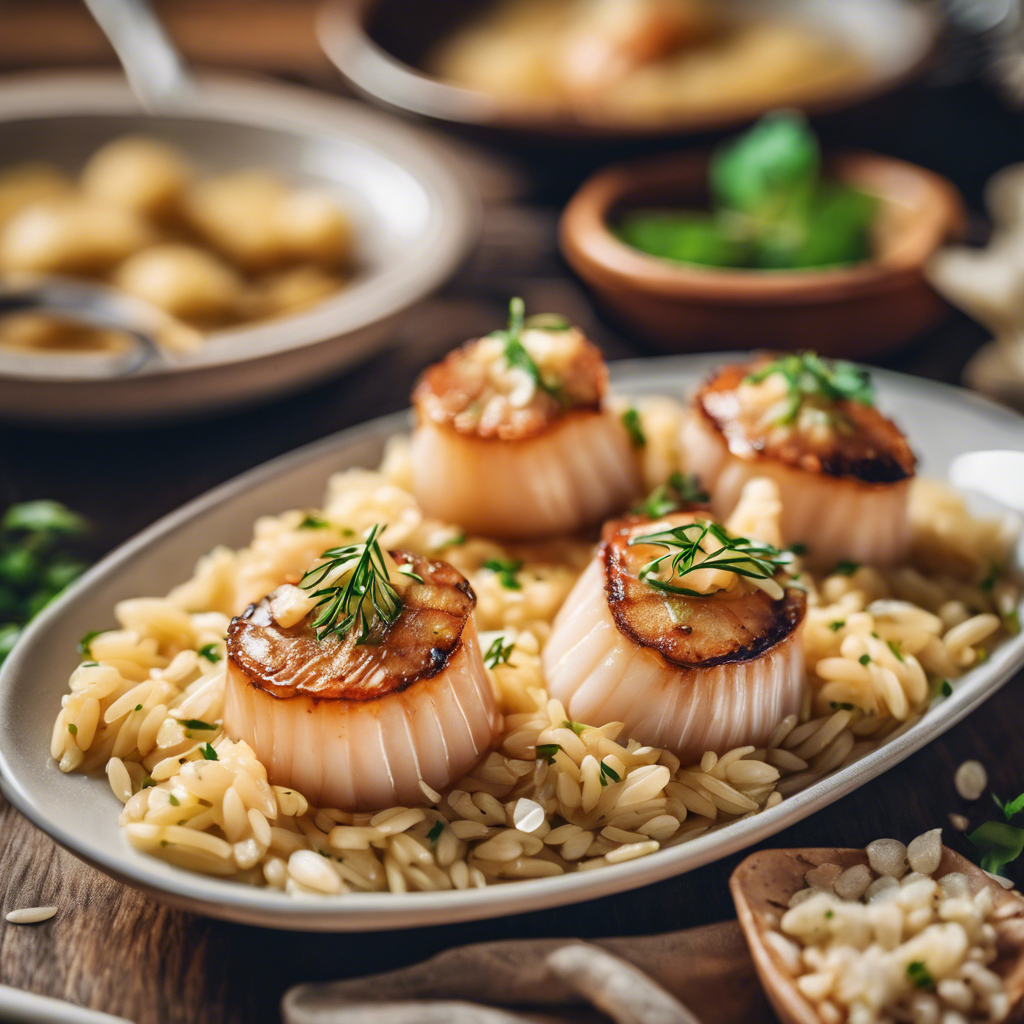 Garlic Butter Scallops with Orzo is a delectable dish that originated in the Mediterranean region, known for its rich culinary heritage. The dish features succulent scallops seared to perfection in a flavorful garlic butter sauce, served over a bed of tender orzo pasta. This dish has gained popularity in coastal regions, where fresh seafood is abundant. Renowned chefs have put their own spin on this classic, incorporating local ingredients and innovative techniques. The key to a perfect Garlic Butter Scallops with Orzo lies in the quality of the scallops and the balance of flavors in the garlic butter sauce. For a unique twist, some chefs infuse the dish with a hint of citrus or fresh herbs. Today, the best versions of this dish can be found in upscale seafood restaurants and coastal eateries, where chefs take pride in sourcing the finest ingredients and showcasing the natural flavors of the sea. Whether it's a special occasion or a casual dining experience, Garlic Butter Scallops with Orzo is a dish that never fails to impress with its harmonious blend of flavors and textures.