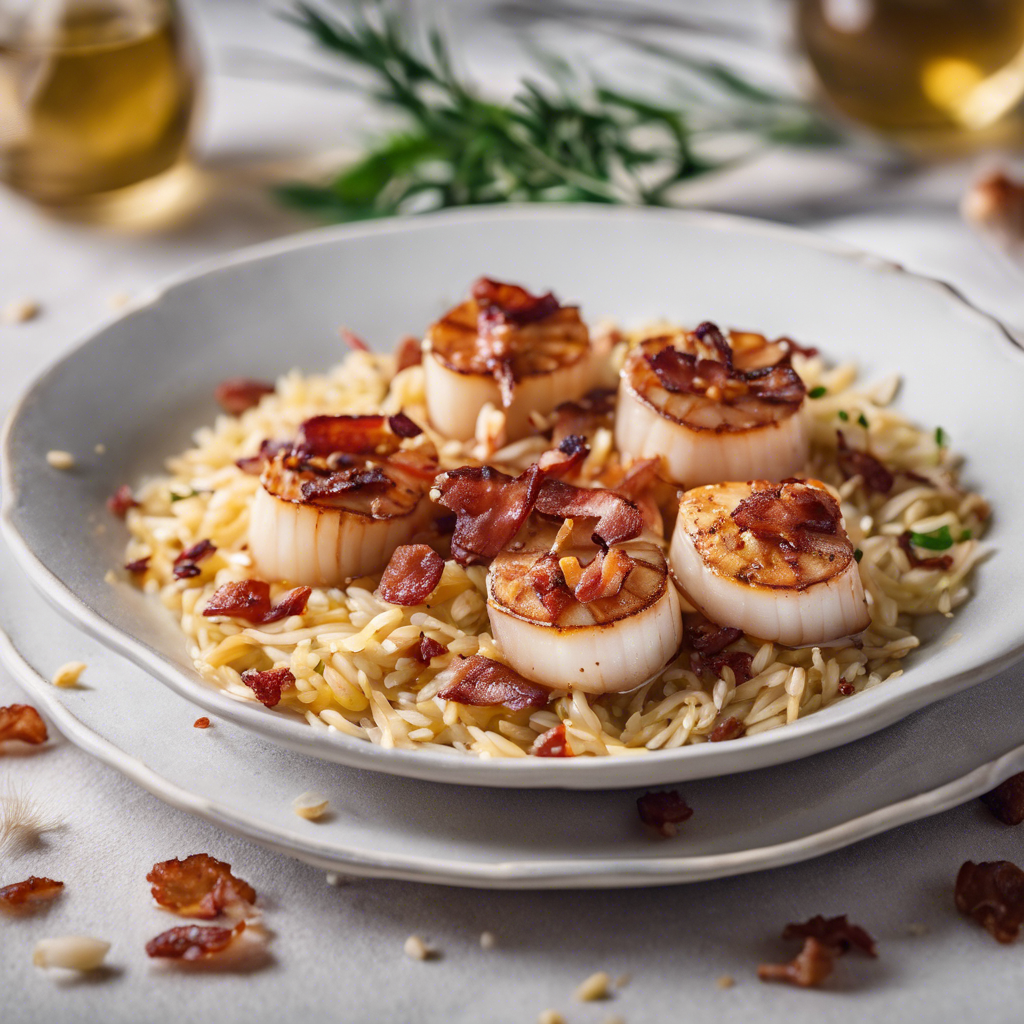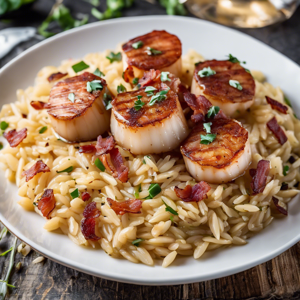 The history of Garlic Butter Scallops with Orzo but topped with crispy bacon bits can be traced back to the coastal regions of Italy, where fresh seafood and pasta are culinary staples. This dish is a delightful fusion of flavors, combining the succulent sweetness of scallops with the rich, savory notes of garlic butter and the satisfying crunch of crispy bacon bits. Renowned chefs in coastal Italian restaurants have perfected this recipe, infusing it with their own unique twists and techniques. Today, the best version of this dish can be found in upscale Italian eateries that prioritize using fresh, high-quality ingredients. The key to achieving the perfect Garlic Butter Scallops with Orzo lies in the careful balance of flavors and textures. The scallops must be seared to tender perfection, the orzo cooked al dente, and the garlic butter sauce infused with just the right amount of aromatic garlic. The addition of crispy bacon bits provides a delightful contrast, adding a smoky, salty element to the dish. For those looking to recreate this dish at home, it's essential to source the freshest scallops available and to pay close attention to the cooking process. Achieving the ideal sear on the scallops and ensuring the orzo is perfectly cooked are crucial steps in bringing out the dish's full potential. Additionally, experimenting with alternative methods, such as grilling the scallops for a smoky flavor or incorporating different types of pasta, can offer exciting variations on this classic recipe.