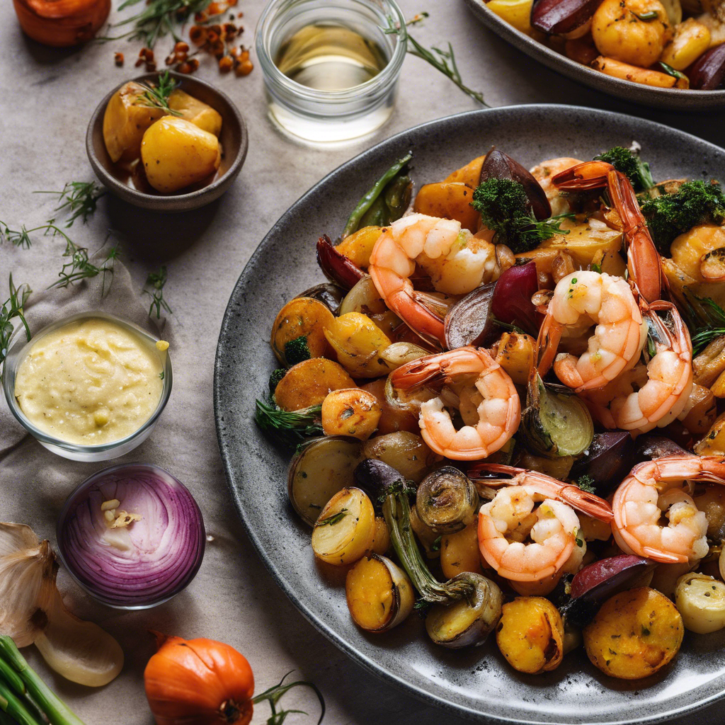 Garlic Butter Shrimp with Roasted Vegetables is a delectable dish that originated in coastal regions, where fresh seafood and locally grown vegetables are abundant. This dish has a rich history, with its roots in Mediterranean and coastal American cuisine. Renowned chefs like Emeril Lagasse and Ina Garten have popularized their own versions of this dish, adding their unique twists to the classic recipe. The key to this dish is the perfect balance of succulent shrimp, aromatic garlic butter, and tender roasted vegetables. For the best version of this dish, head to coastal restaurants in regions like New Orleans, the Mediterranean, or the Pacific Northwest. The freshness of the ingredients is crucial, and the quality of the shrimp and the blend of herbs and spices are essential for an authentic and flavorful experience. Whether it's served over pasta or with a side of crusty bread, this dish is a true culinary delight that captures the essence of coastal dining.