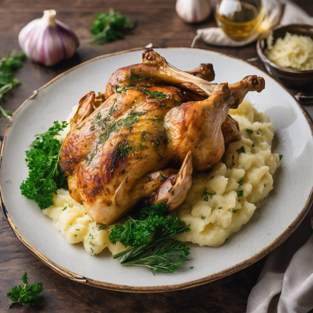 Garlic Herb Roasted Chicken with Garlic Mashed Potatoes is a classic comfort food dish that has been enjoyed for generations. The dish is believed to have originated in the Mediterranean region, where garlic and herbs are commonly used in cooking. The succulent chicken is seasoned with a blend of garlic, rosemary, thyme, and other herbs, then roasted to perfection. The creamy mashed potatoes are infused with roasted garlic, butter, and cream, creating a rich and flavorful side dish. This dish has been a staple in many family-owned restaurants and is often associated with home-cooked meals. Today, the best versions of this dish can be found in cozy, rustic eateries that prioritize using fresh, high-quality ingredients. The key to getting this dish right lies in the quality of the chicken and the perfect balance of herbs and garlic in both the chicken and mashed potatoes. For a twist on the traditional recipe, some chefs also incorporate lemon or paprika for added depth of flavor.