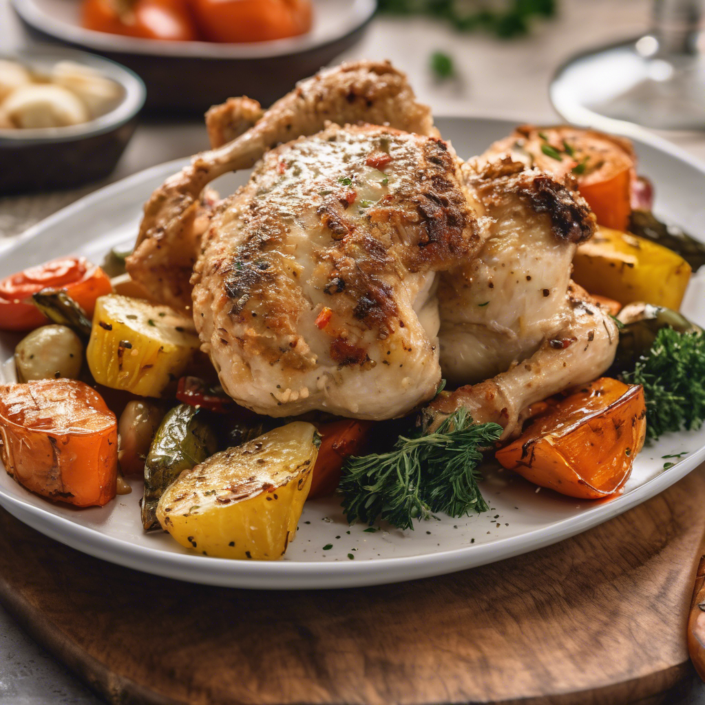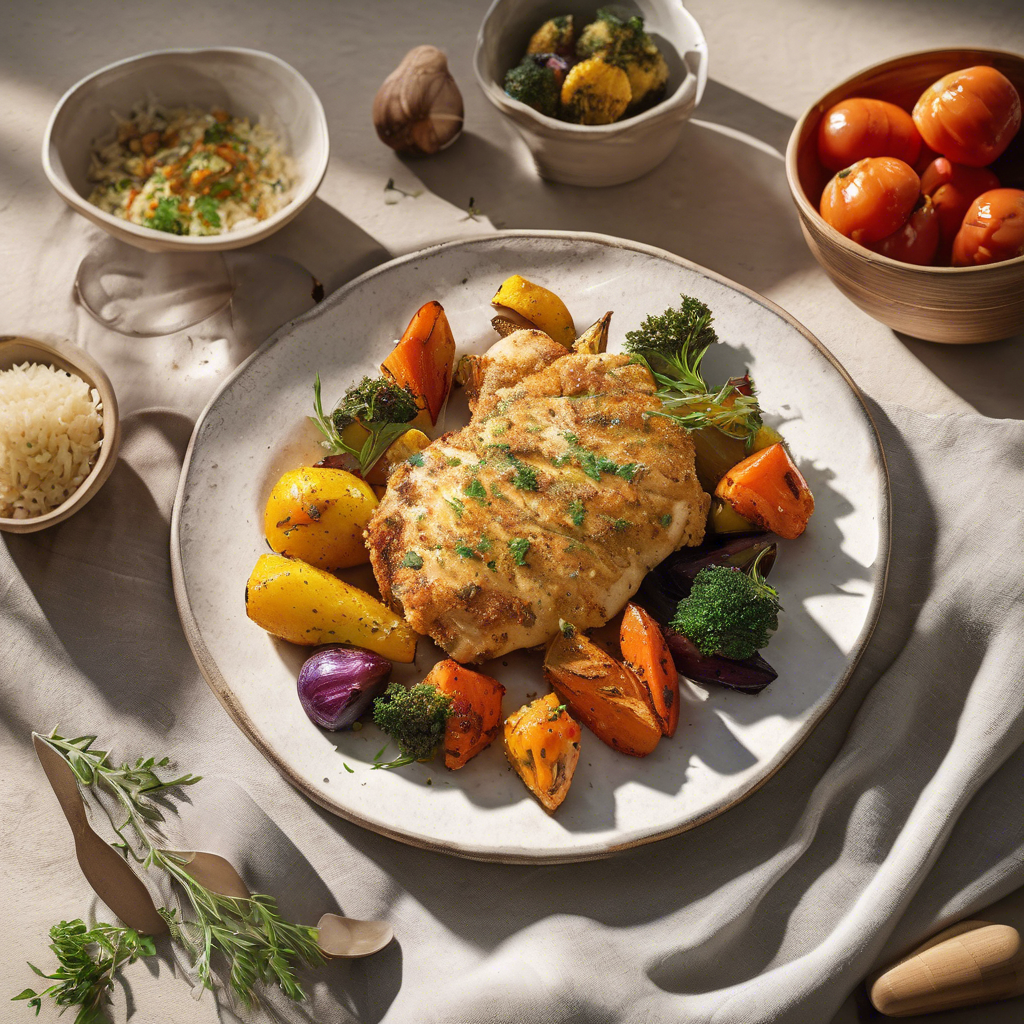 Garlic Parmesan Chicken with a side of roasted vegetables is a classic Italian-inspired dish that has been enjoyed for generations. The dish features tender, juicy chicken breasts coated in a flavorful blend of garlic, Parmesan cheese, and herbs, then baked to golden perfection. The roasted vegetables, such as carrots, zucchini, and bell peppers, add a colorful and nutritious element to the meal. This dish has its roots in the rustic kitchens of Italy, where chefs would use simple, fresh ingredients to create delicious and satisfying meals. Today, it can be found on the menus of Italian restaurants around the world, and is a favorite for those seeking a comforting and hearty meal. For the best version of this dish, look for a restaurant with a skilled chef who knows how to balance the flavors of garlic and Parmesan to perfection. The key to getting this dish right lies in using high-quality Parmesan cheese and fresh garlic, as well as ensuring the chicken is cooked just right to retain its juiciness. Alternatively, some chefs may opt for grilling the chicken and vegetables for a smoky, charred flavor that adds a unique twist to the dish. Whether enjoyed at a cozy trattoria in Tuscany or a bustling Italian eatery in New York City, Garlic Parmesan Chicken with roasted vegetables is a timeless and beloved dish that continues to delight diners around the world.