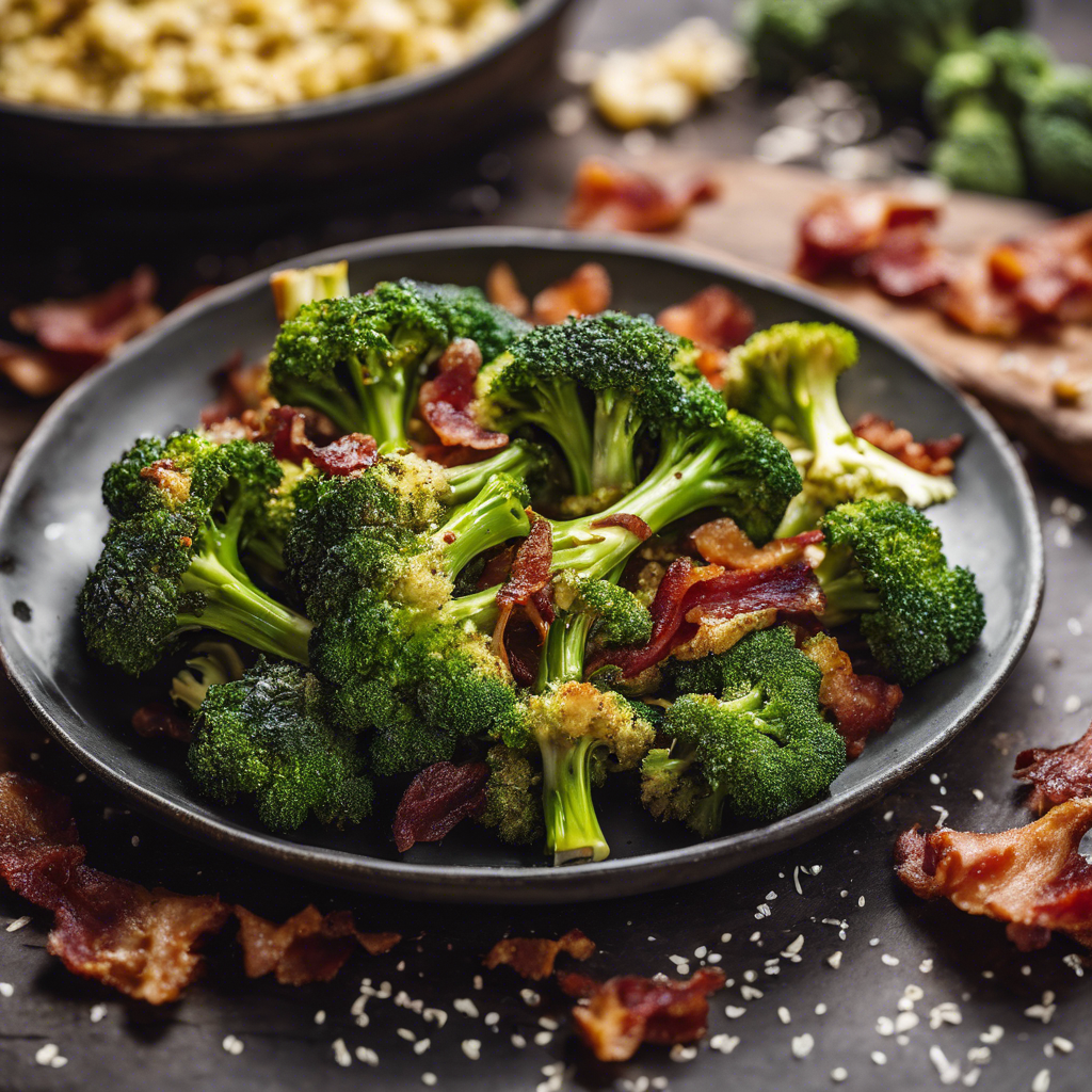 The history of Garlic Parmesan Roasted Broccoli with added bacon bits is a delightful fusion of flavors that has evolved over time. This dish combines the classic roasted broccoli with the savory goodness of bacon and the rich, nutty taste of Parmesan cheese. The addition of bacon bits brings a smoky, salty element that elevates the dish to a whole new level. This mouthwatering creation has become a popular side dish in many restaurants and homes, loved for its irresistible combination of textures and flavors. Chefs across the globe have put their own spin on this dish, adding their unique flair to the recipe. The best version of this dish can be found in upscale restaurants that prioritize using fresh, high-quality ingredients. The key to getting this dish right lies in achieving the perfect balance of crispy broccoli, savory bacon bits, and the creamy richness of Parmesan cheese. For a famous alternative method, some chefs opt to pan-fry the bacon until crispy before tossing it with the roasted broccoli and finishing with a generous sprinkle of Parmesan. This method infuses the dish with an extra layer of smoky flavor and a satisfying crunch. Whether enjoyed as a side dish or a standalone snack, Garlic Parmesan Roasted Broccoli with added bacon bits is a delightful culinary creation that continues to captivate taste buds around the world.