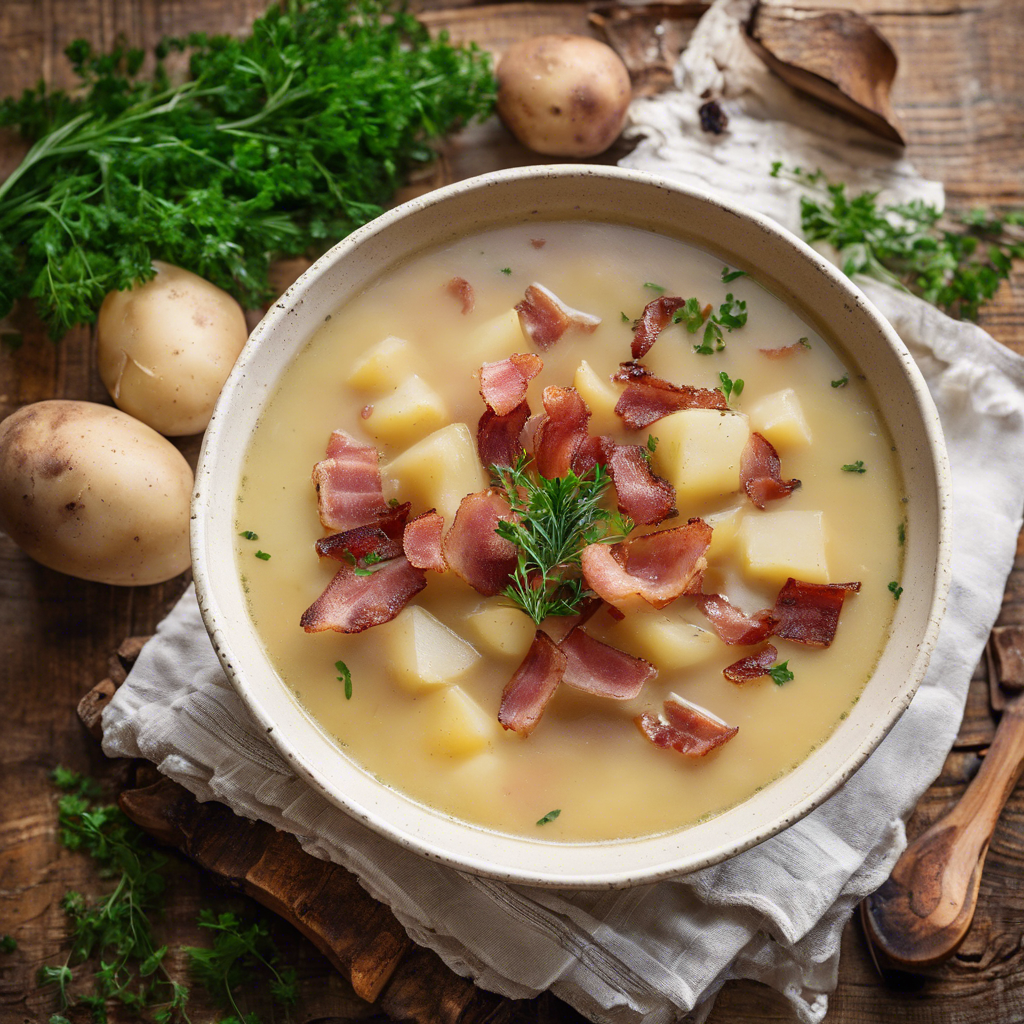 German Potato Soup, also known as Kartoffelsuppe, has been a staple in German cuisine for centuries. This hearty and comforting soup has its roots in the rural regions of Germany, where potatoes were a common and affordable ingredient. The addition of bacon brings a smoky and savory flavor to the soup, elevating its taste to new heights. In Germany, each region has its own variation of the potato soup, with some adding leeks, carrots, or celery for extra depth of flavor. Renowned chefs like Alfons Schuhbeck and Tim Mälzer have put their own spin on this classic dish, incorporating bacon to add a rich and indulgent touch. Today, the best version of German Potato Soup with added bacon can be found in traditional German gasthauses and restaurants, particularly in Bavaria and the Black Forest region. The key to making this dish shine is to use high-quality, smoky bacon and to allow the flavors to meld together slowly over low heat. For those looking to try a famous alternative method for making this dish, consider the addition of beer to the soup for a unique twist. This adds a depth of flavor and complexity that pairs perfectly with the smoky bacon and creamy potatoes. Whether enjoyed in a cozy German tavern or homemade in your own kitchen, German Potato Soup with added bacon is a true comfort food that warms the soul.