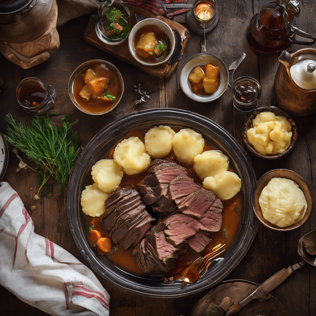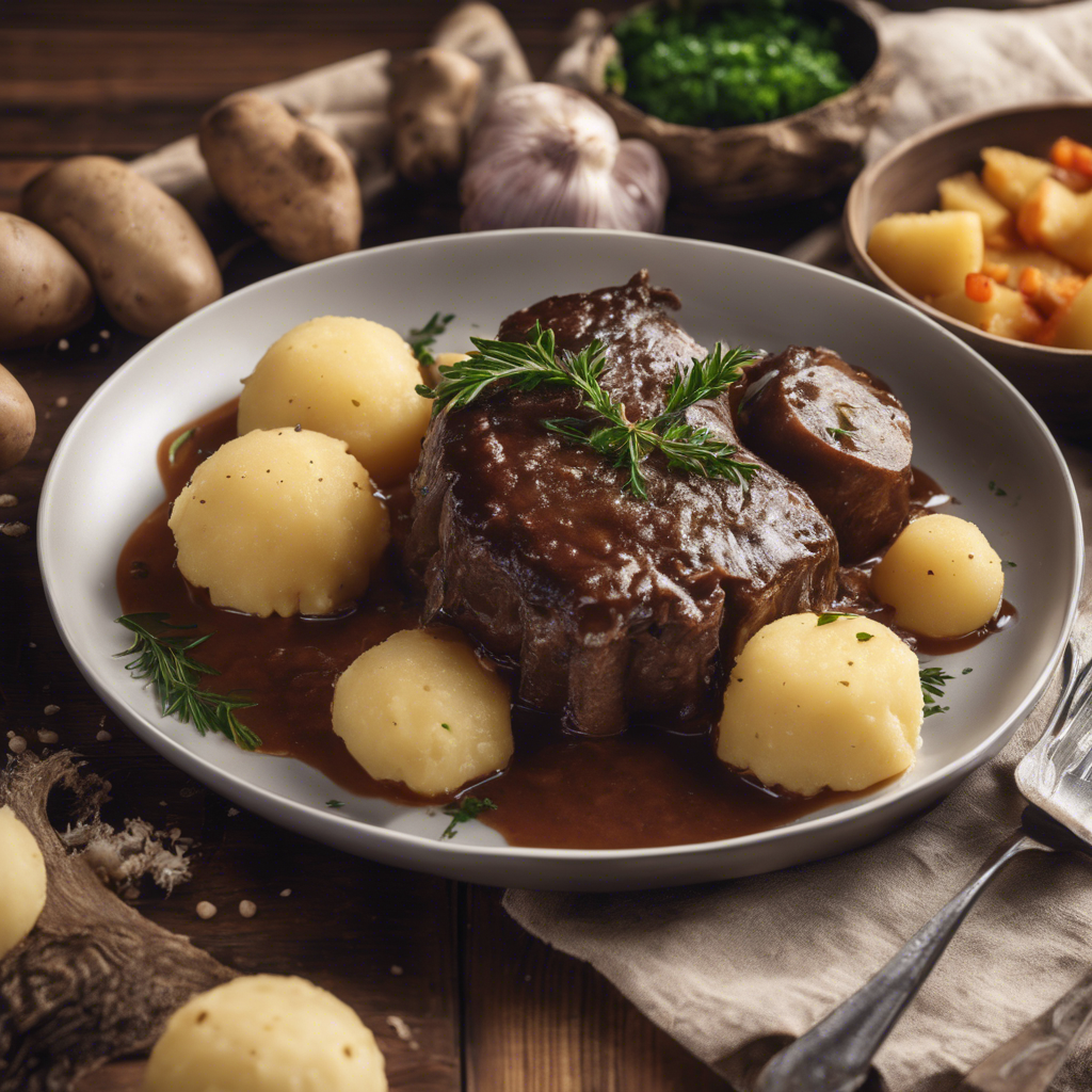 German Sauerbraten, a traditional pot roast marinated in a mixture of vinegar, water, and spices, has a rich history dating back to the Middle Ages. This iconic dish is often served with potato dumplings, creating a harmonious blend of flavors and textures. The tangy, tender meat pairs perfectly with the hearty, starchy dumplings, making it a beloved comfort food in Germany. In the heart of Bavaria, renowned chefs at historic restaurants like the 300-year-old "Hofbräuhaus" in Munich and "Zur Letzten Instanz" in Berlin, have perfected the art of preparing Sauerbraten with potato dumplings. The key to this dish lies in the marination process, where the meat is left to soak in a flavorful blend of vinegar and spices for several days, ensuring a depth of flavor that is truly unforgettable. For the best version of this dish today, head to the charming countryside taverns in the Rhineland region, where the Sauerbraten is slow-cooked to perfection and served alongside pillowy potato dumplings. The balance of sweet and sour notes in the marinade, coupled with the fluffy, buttery texture of the dumplings, creates a culinary experience that is second to none. When preparing this dish at home, it's crucial to pay attention to the marination process, allowing the meat to absorb the flavors fully. Additionally, mastering the art of making light and fluffy potato dumplings is essential to achieving an authentic and satisfying Sauerbraten experience. For a unique twist, some chefs incorporate gingerbread or gingersnap cookies into the marinade, adding a hint of sweetness and depth to the dish. In conclusion, German Sauerbraten served with potato dumplings is a timeless classic that embodies the rich culinary heritage of Germany. Whether enjoyed in a historic tavern in Bavaria or recreated in your own kitchen, this dish is a testament to the art of slow cooking and the joy of savoring comforting, soul-warming flavors.