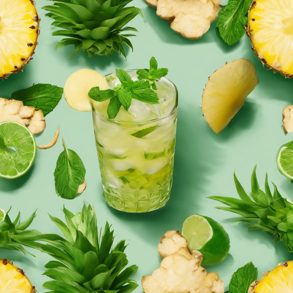 The Ginger Pineapple Mojito is a refreshing and tropical twist on the classic mojito cocktail. This delightful concoction combines the zesty flavors of ginger and the sweet tang of pineapple with the traditional mint and lime of a mojito. The drink is believed to have originated in the Caribbean, where the abundance of fresh pineapples and the spicy kick of ginger inspired mixologists to create this unique variation. Today, the Ginger Pineapple Mojito can be found in trendy cocktail bars and beachside resorts, where skilled bartenders expertly muddle the ingredients to create a perfectly balanced and invigorating drink. For the best version of this cocktail, seek out a bar with a reputation for using fresh, high-quality ingredients and skilled mixologists.