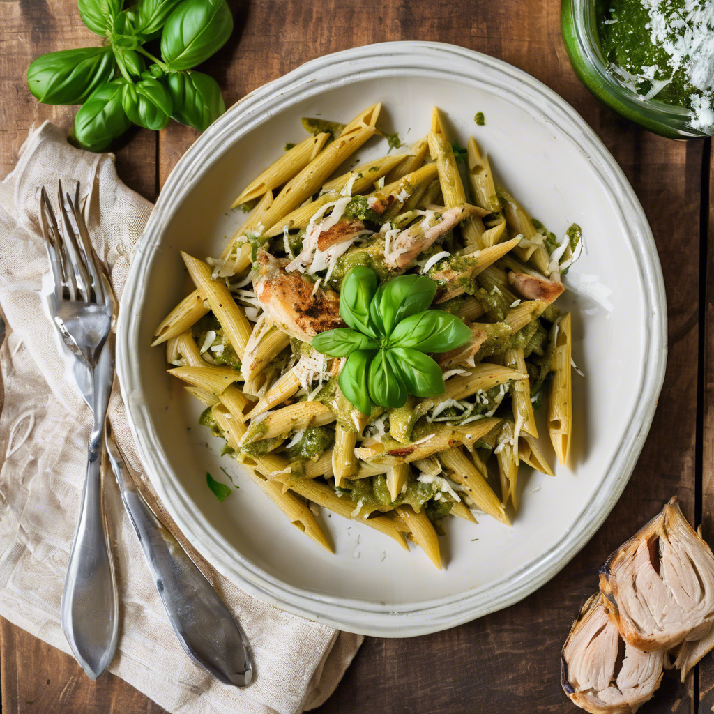 Gluten-Free Penne with Pesto Sauce and Grilled Chicken