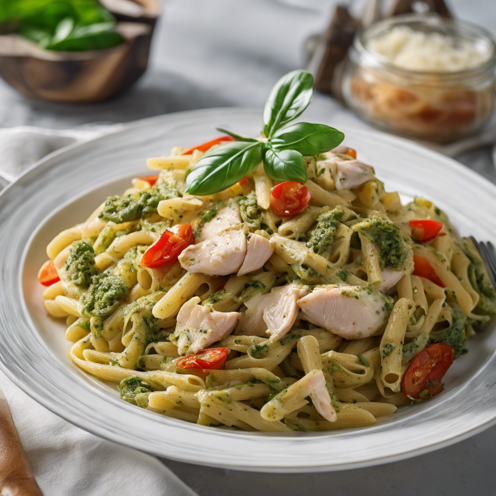 Gluten-Free Pesto Chicken and Vegetable Pasta is a delicious and healthy dish that has gained popularity in recent years. This dish originated in Italy, where chefs combined traditional pesto sauce with gluten-free pasta, grilled chicken, and a variety of fresh vegetables. The dish has since spread to restaurants and home kitchens around the world, with chefs adding their own unique twists and variations. The key to a great Gluten-Free Pesto Chicken and Vegetable Pasta lies in the quality of the pesto sauce, the tenderness of the chicken, and the freshness of the vegetables. Today, this dish can be found in Italian restaurants and eateries that specialize in gluten-free cuisine. For a twist, some chefs also incorporate alternative proteins such as shrimp or tofu, making it a versatile and customizable dish for those with dietary restrictions.