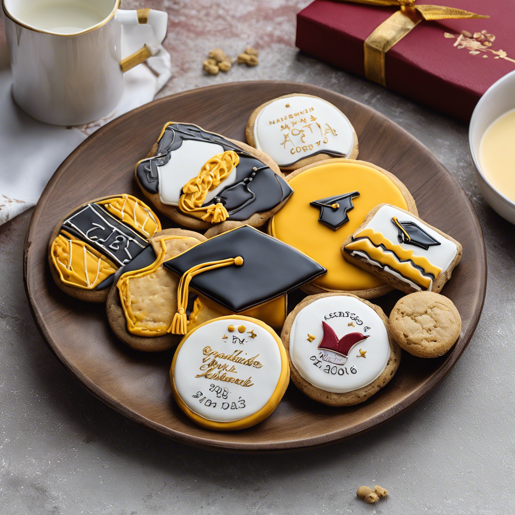 - Once the cookies are completely cooled, prepare the personalized icing for each graduate by mixing powdered sugar with a small amount of water to create a thick glaze. Divide the glaze into separate bowls and add food coloring to each bowl to match the colors of the cookies. Decorate the cookies with the personalized icing and assorted sprinkles or edible decorations.