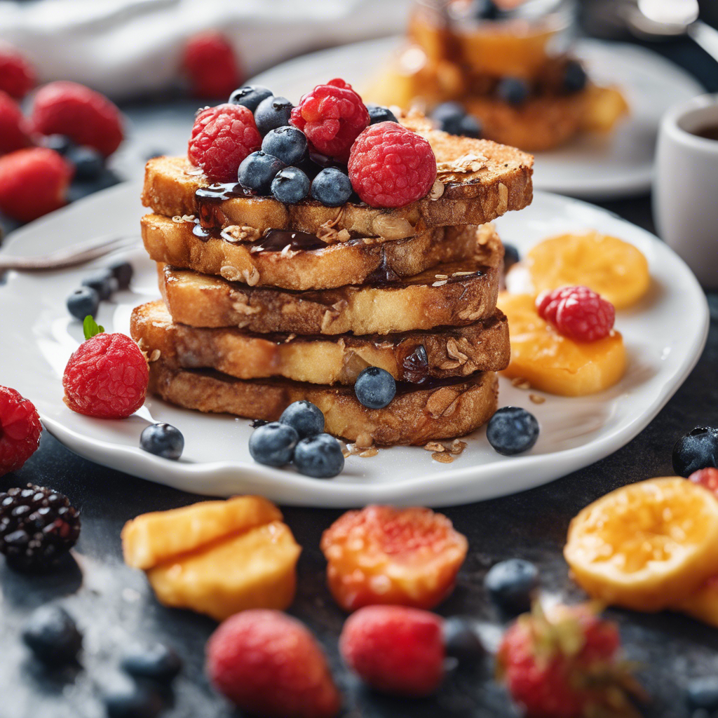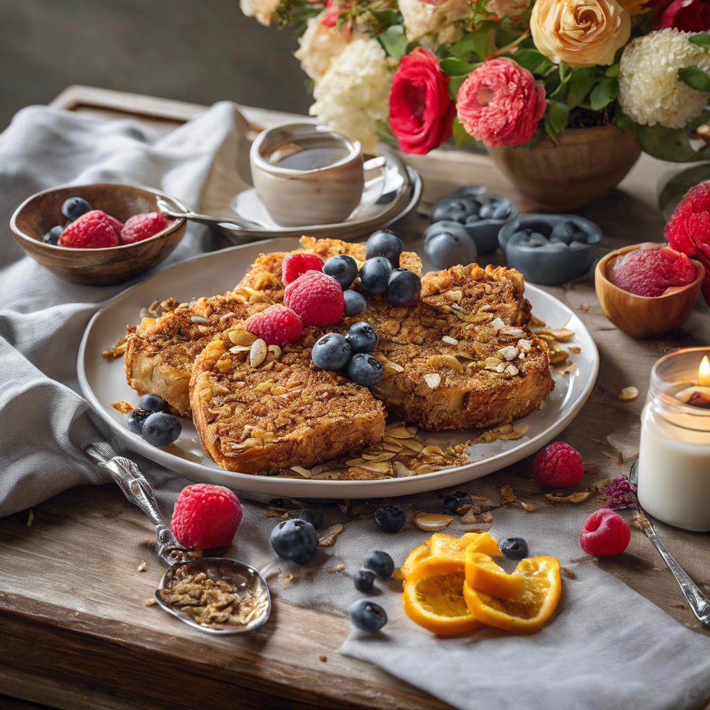 Granola-Crusted French Toast is a delightful twist on the classic breakfast favorite. This dish originated in the United States, where chefs sought to add a crunchy, flavorful element to traditional French toast. The combination of the sweet, nutty granola crust with the soft, custardy interior of the French toast creates a delightful contrast of textures and flavors. One renowned chef known for popularizing Granola-Crusted French Toast is Chef Bobby Flay, who featured his version of the dish on his cooking show. The dish has since become a staple in brunch menus across the country, particularly in trendy cafes and restaurants in cities like New York, Los Angeles, and San Francisco. To make the best Granola-Crusted French Toast, it's essential to use high-quality granola with a mix of nuts, seeds, and dried fruits for added texture and flavor. Additionally, using thick slices of brioche or challah bread and soaking them in a rich custard mixture before coating them in granola ensures a decadent and indulgent final product. For those looking to try a unique twist on this dish, some chefs have experimented with using different types of granola, such as coconut or chocolate-flavored varieties, to add an extra layer of complexity to the flavor profile. Whether enjoyed at a bustling brunch spot or homemade in your own kitchen, Granola-Crusted French Toast is a delightful and satisfying breakfast treat that is sure to please the palate.