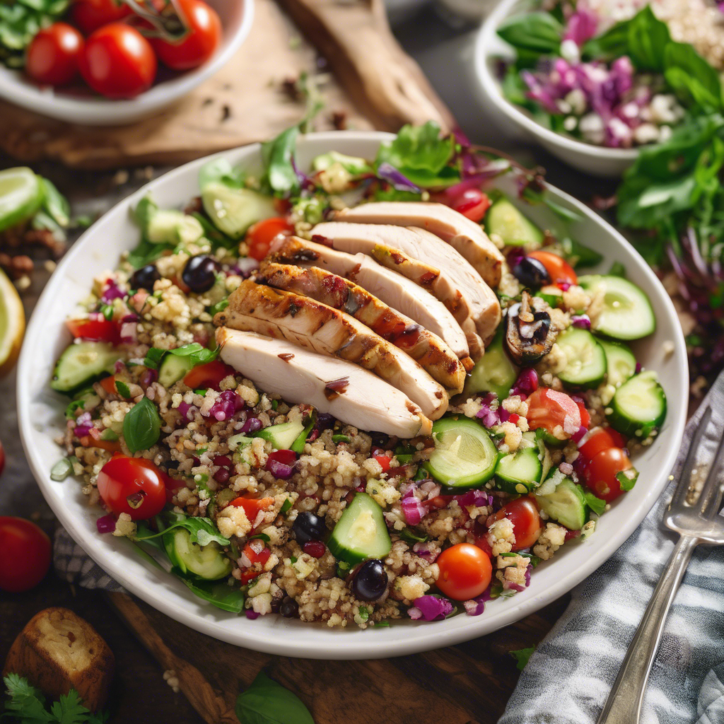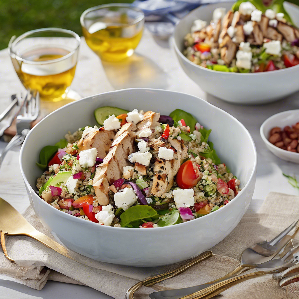 The Greek Quinoa Salad with added grilled chicken is a modern twist on the classic Mediterranean dish. Originating in Greece, this salad has become a popular choice for health-conscious diners seeking a flavorful and nutritious meal. The addition of grilled chicken provides a protein boost, making it a satisfying option for a main course. Renowned chefs like Yotam Ottolenghi and Maria Elia have put their own spin on this dish, incorporating fresh ingredients such as cherry tomatoes, cucumbers, feta cheese, and Kalamata olives. The quinoa adds a nutty flavor and a satisfying texture, while the grilled chicken brings a smoky, savory element to the salad. In Greece, this dish is often enjoyed during the summer months when the produce is at its peak. The best versions of this salad can be found in traditional Greek tavernas, where the ingredients are sourced locally and prepared with care. To make the perfect Greek Quinoa Salad with grilled chicken, it's essential to use high-quality extra virgin olive oil, fresh herbs like oregano and mint, and ripe, juicy tomatoes. The key is to balance the flavors of the ingredients, allowing the natural sweetness of the vegetables to shine through. For a twist on the traditional recipe, some chefs marinate the grilled chicken in a mixture of lemon juice, garlic, and Greek yogurt before grilling, adding a tangy and tenderizing element to the dish. Whether enjoyed in a seaside taverna in Greece or prepared at home, the Greek Quinoa Salad with grilled chicken is a delightful combination of flavors and textures, perfect for a light and satisfying meal.