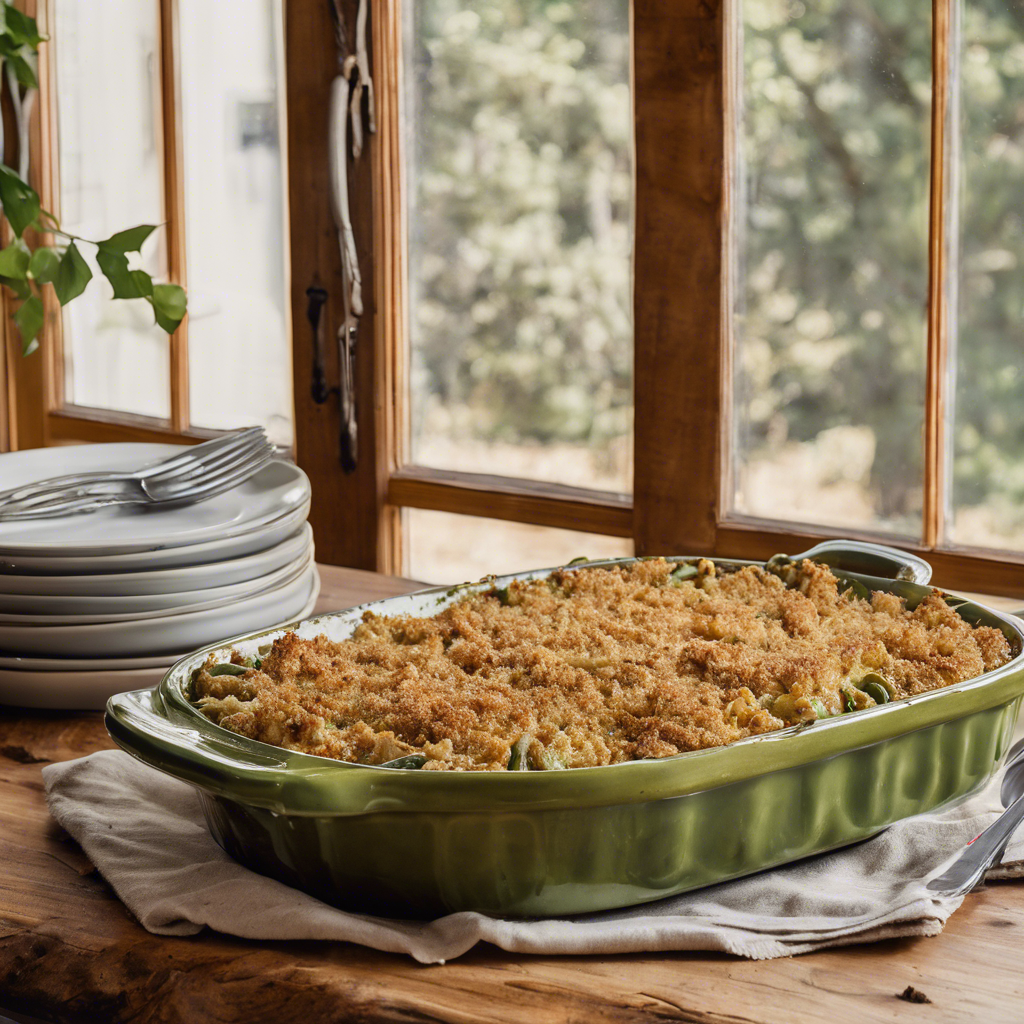Cheesy Green Bean Casserole with Breadcrumb Topping