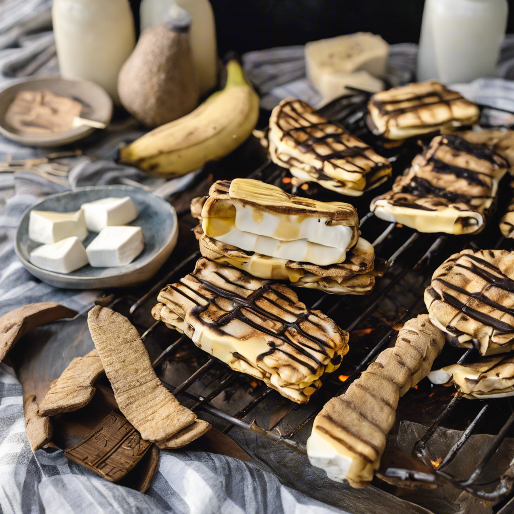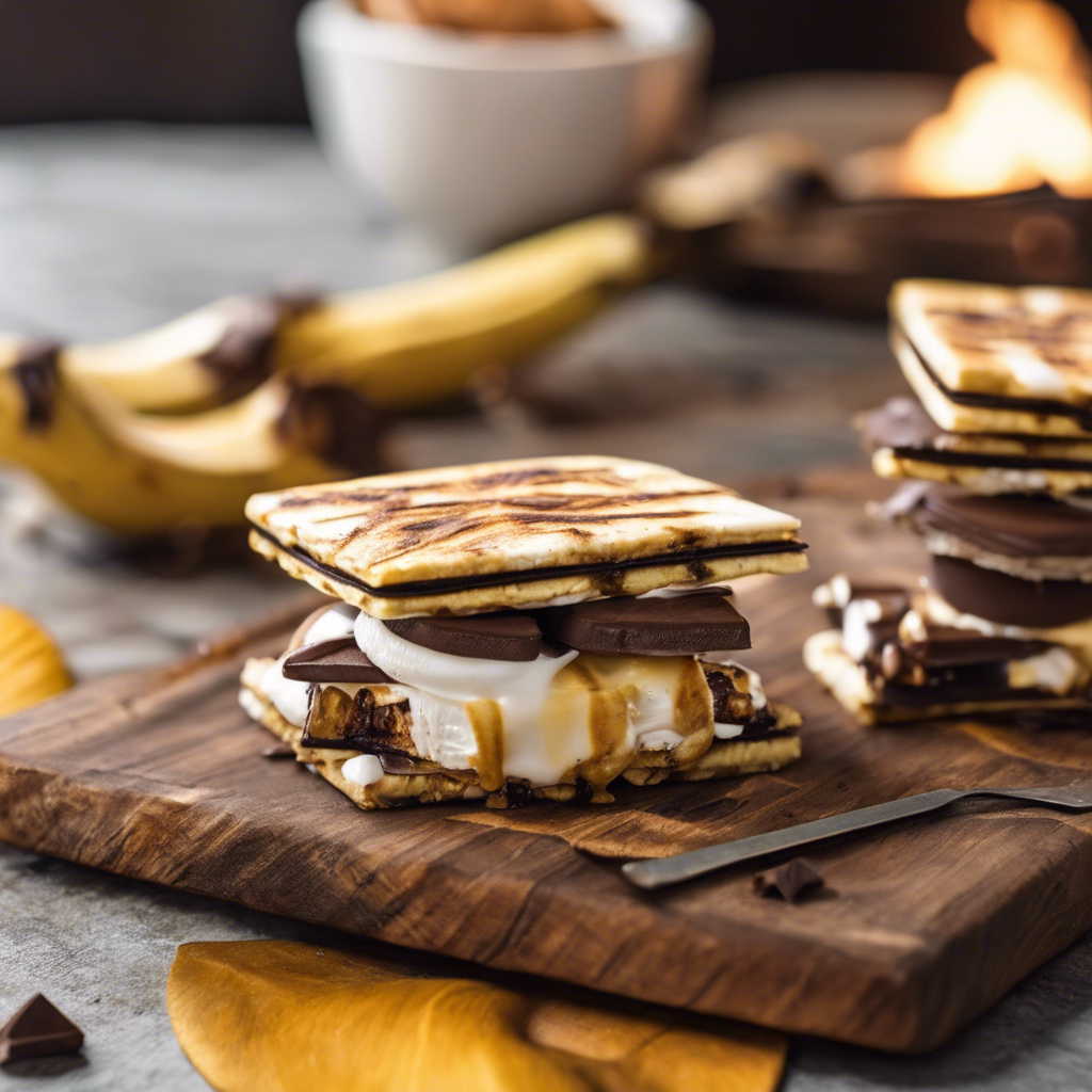 Grilled Banana S'mores are a delightful twist on the classic campfire treat. This indulgent dessert features ripe bananas, gooey marshmallows, and rich chocolate sandwiched between graham crackers. The dish has gained popularity in recent years, with chefs and home cooks alike experimenting with different variations. The combination of caramelized bananas and melted chocolate creates a decadent flavor explosion that is hard to resist. While the origins of Grilled Banana S'mores are not well-documented, they have become a staple at backyard barbecues and campfire gatherings. For the best version of this dish, look for ripe, but firm bananas and high-quality chocolate to achieve the perfect balance of flavors. Whether you're grilling them over an open flame or using a BBQ, these Grilled Banana S'mores are sure to be a hit at any gathering.